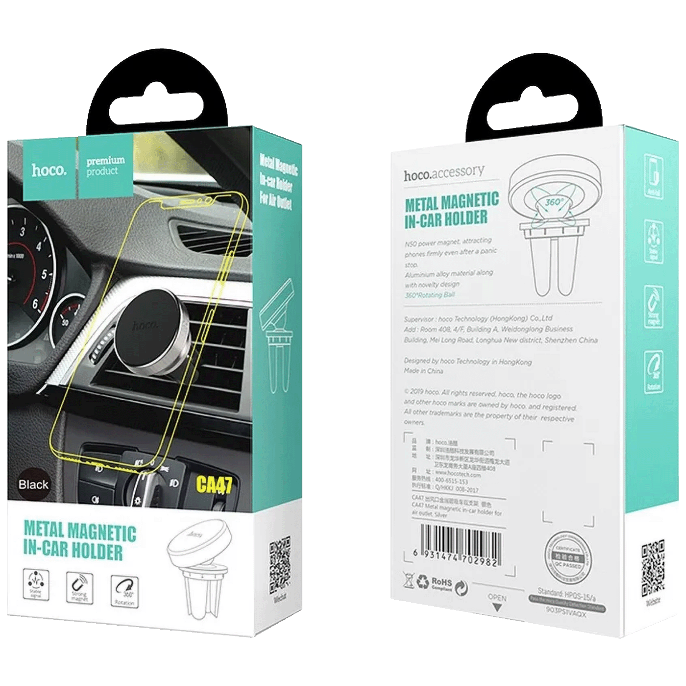 hoco. Držač za mobilne uređaje, magnetni, Alu tijelo - CA47 Metal Black