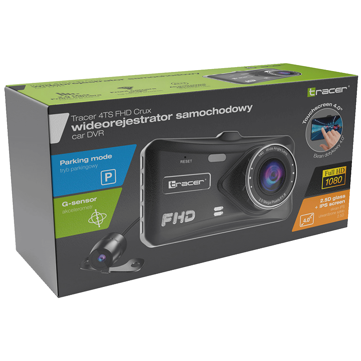 Tracer Auto kamera, 2x 2 Mpx, 4" LCD, FullHD, microSD, G-senzor - 4TS FHD CRUX DASH CAM