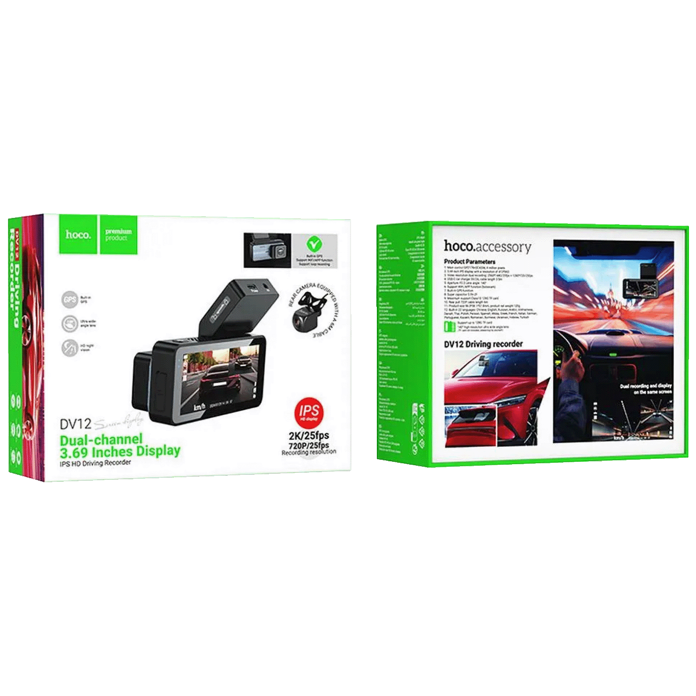 Hoco DV12 2K GPS auto kamera je napredni uređaj za snimanje koji nudi visokokvalitetne snimke s prednje i stražnje kamere.