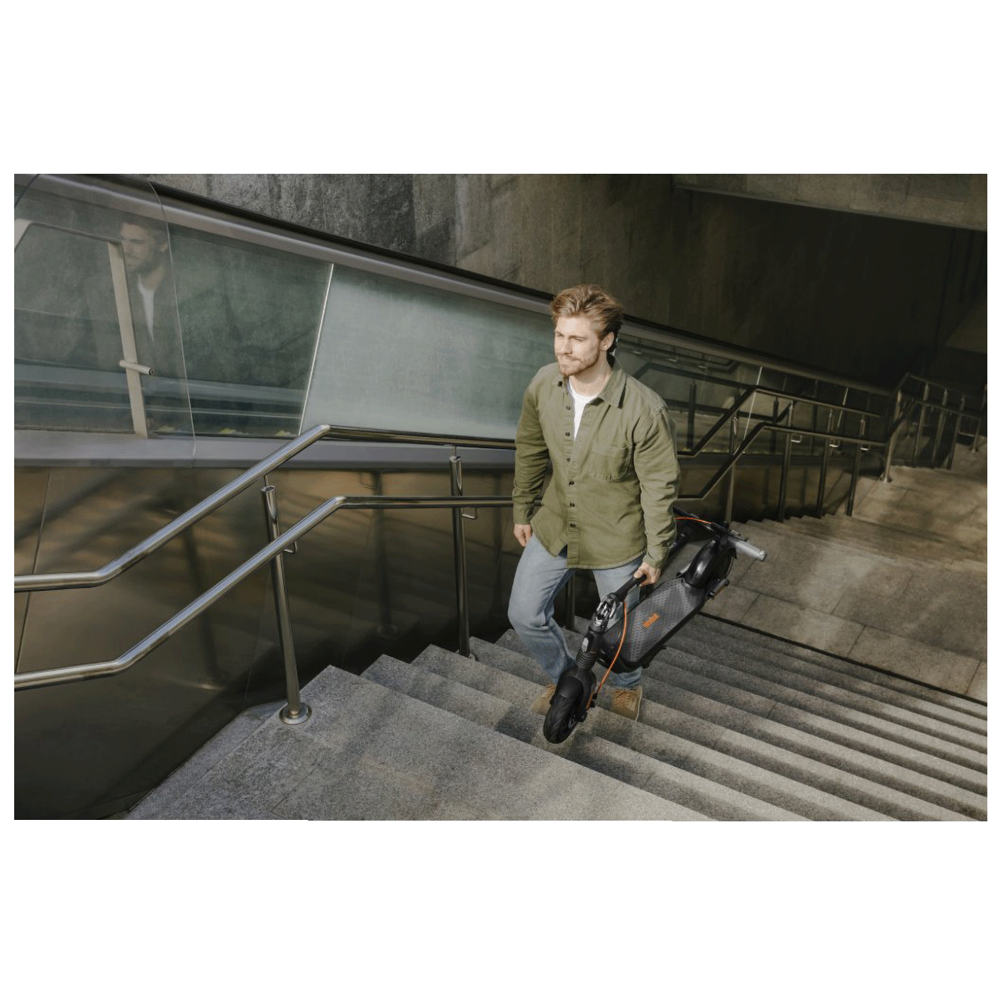 Ninebot KickScooter F2 Plus by Segway savršen je suputnik za svakodnevnu vožnju zahvaljujući velikom dometu do 55 km i maksimalnoj snazi od 800 W. F2 Plus pun je novih značajki s odličnim omjerom cijene i performansi i nudi vam sve što trebate. Dvostruki sustav kočenja, ugrađeni pokazivači smjera, sustav kontrole proklizavanja (TCS), poboljšane gume koje se same obnavljaju, visoke performanse i zahvaljujući integriranoj funkciji Apple Find My, znat ćete gdje je. Ovo će također učiniti vaše putovanje sigurnim i zabavnim.