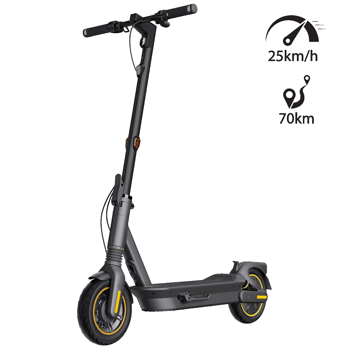Sa svojim dometom do 70 km zahvaljujući novorazvijenoj tehnologiji RideyLONG, snažnim pogonom na stražnje kotače, u kombinaciji sa sistemom dvostrukog ovjesa i sistemom kontrole proklizavanja za održavanje stabilnosti na skliskim cestama, MAX G2 E otključava vašu vožnju do sledeći nivo!