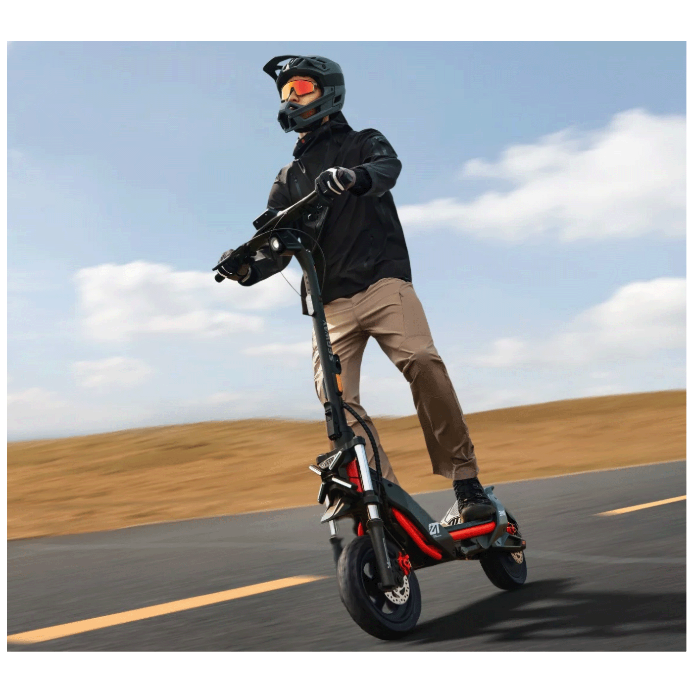Posebno razvijene 11-inčne terenske gume bez zračnica za sve terene s dodatnom širinom pružaju izvrsnu potporu i prianjanje, čineći svaku vožnju udobnom i samouvjerenom.