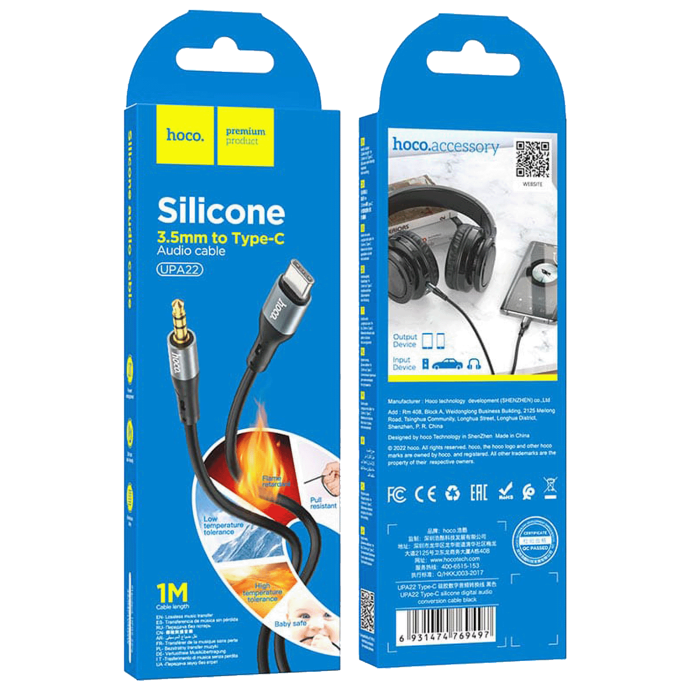 Audio kabel HOCO UPA22. Idealno je rješenje za povezivanje prijenosnih audio uređaja kao što su pametni telefoni, tableti, MP3, MP4 playeri, auto stereo uređaji, prijenosni zvučnici.