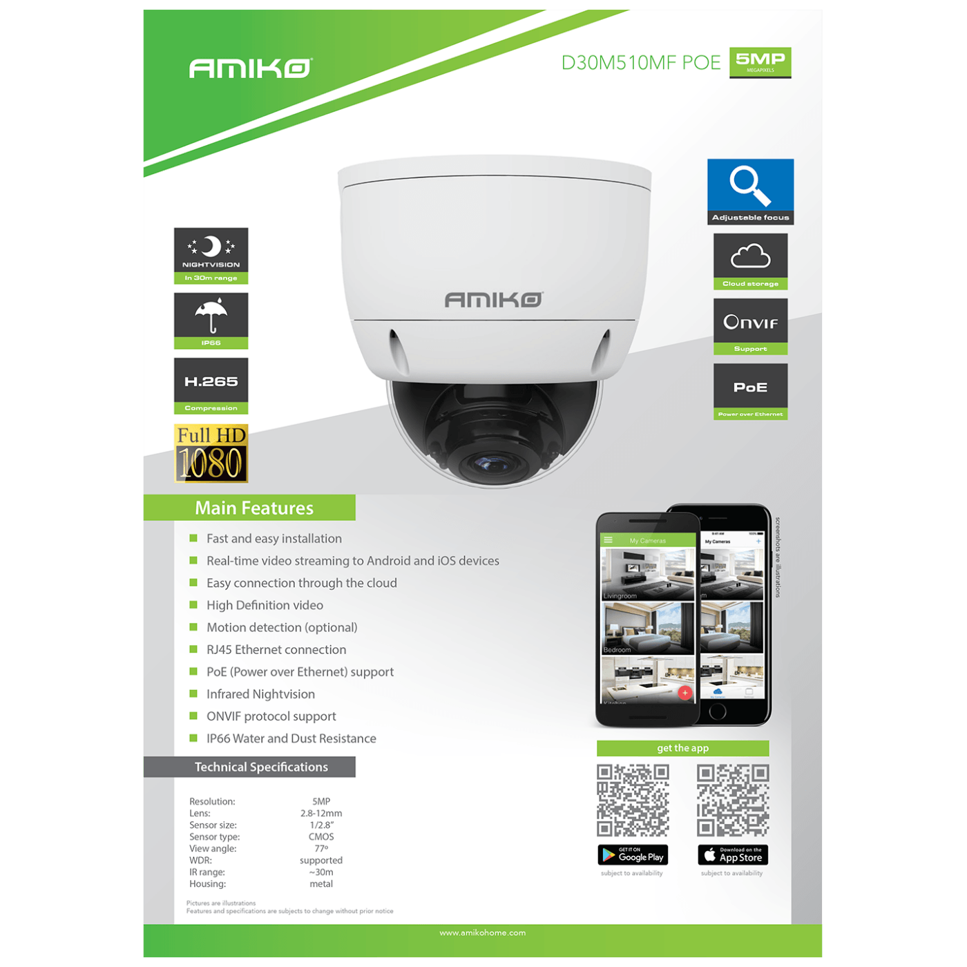 Amiko Home Kamera IP, 5 MP 1/2.8" SONY Starvis, PoE, H.265 - D30M510B MF PoE