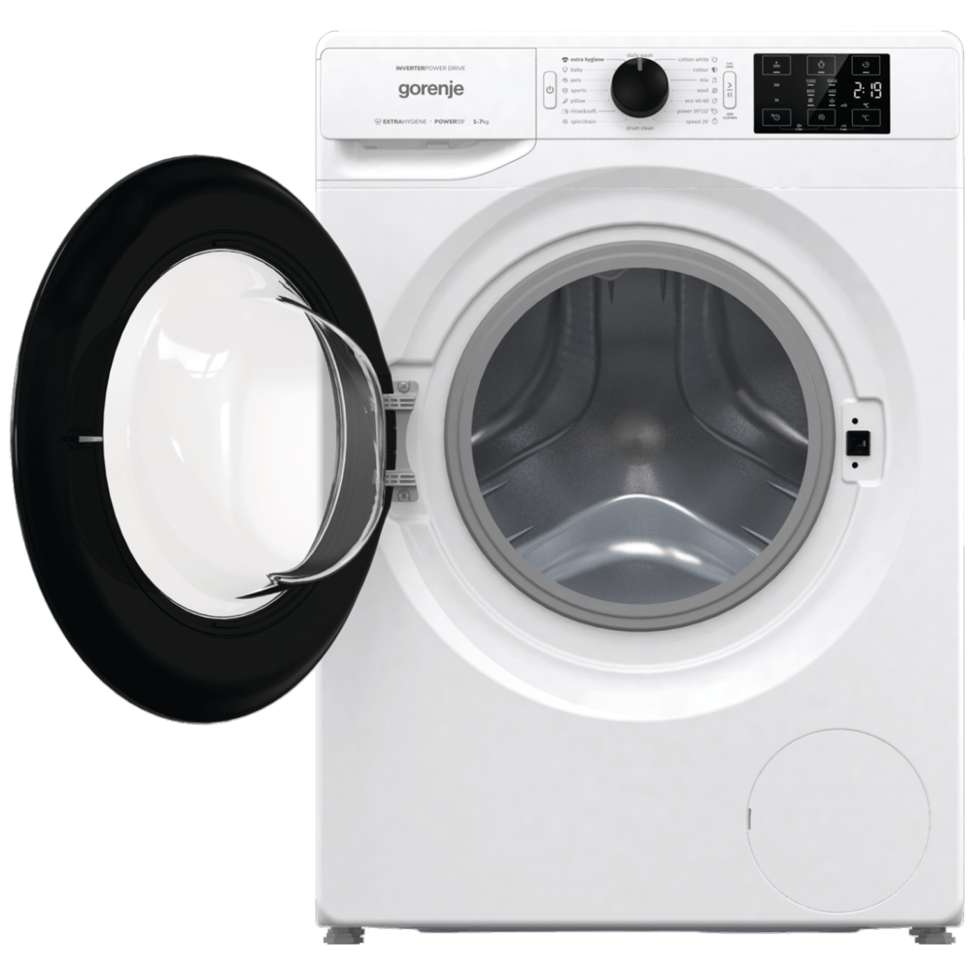 Posebni programi: Pets, Dodatna higijena, Odjeća za bebe, Daily wash, Eko 40–60 °C, Sportska odjeća, Brzo pranje 20`, PowerWash 59`, Jastuci