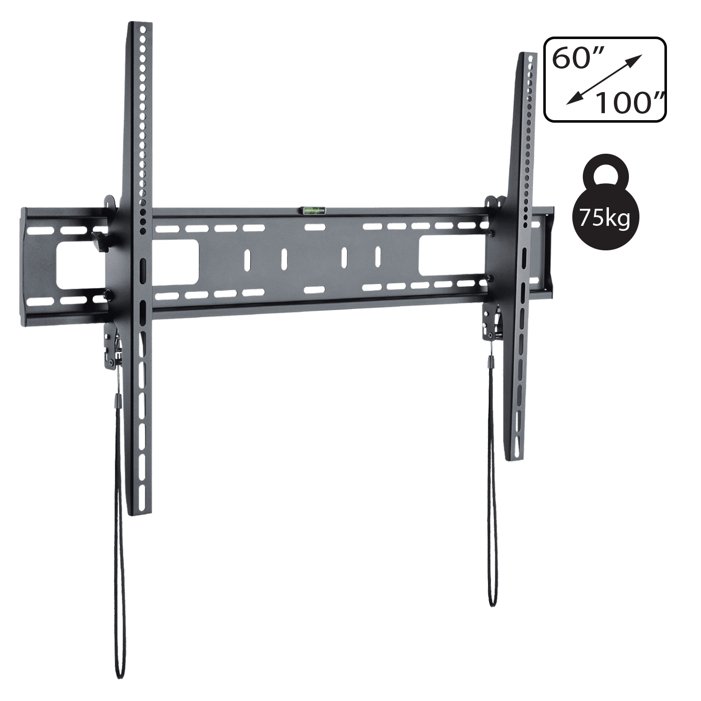 Zidni nosač za TV prijemnike 60" - 100", maximalno opterećenja 75 kg, VESA 200 x 200, 300 x 200, 300 x 300, 400 x 200, 400 x 300, 400 x 400, 600 x 400, 600 x 600, 800 x 600, 900 x 600 mm, jednostavna montaža, fiksno pozicioniranje.