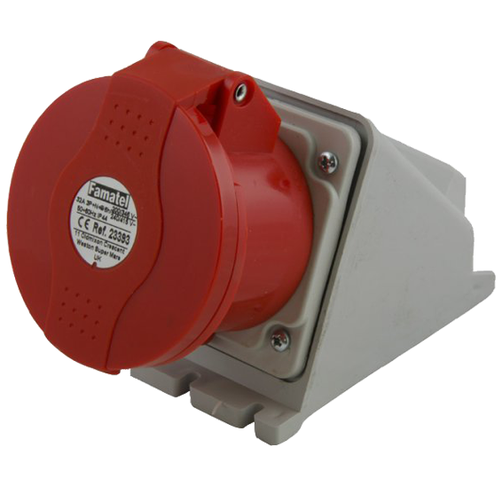 Zidna utičnica, 32A, 380÷415VAC, Frekvencija 50-60Hz, 5 Polna (3P+N+E), PIN lokacija 6H, IP44, crvena boja.
