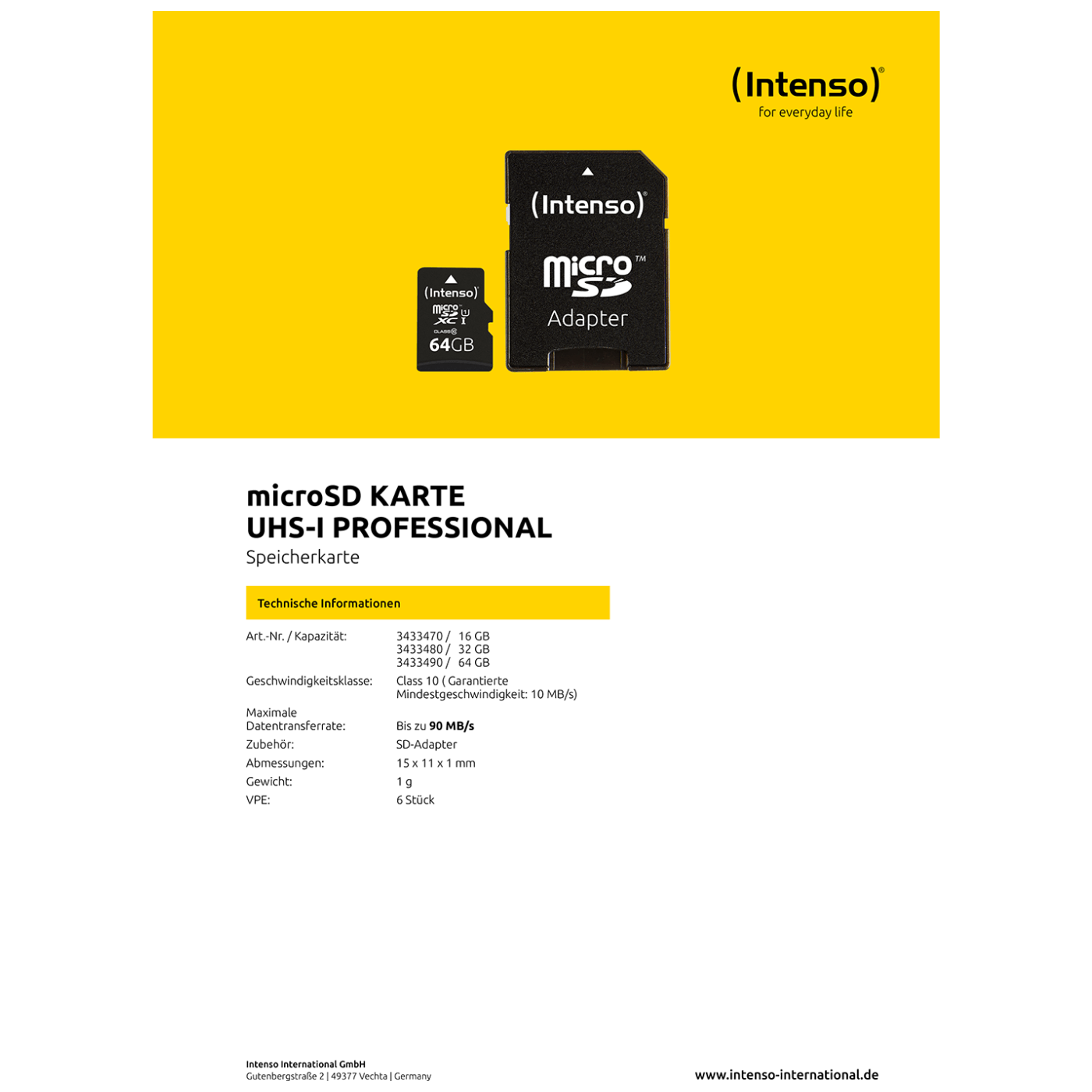 (Intenso) Micro SDHC/SDXC kartica 64GB Class 10, UHS-I +adapter, Pro - MicroSD 64GB Class10 UHS-I Pro