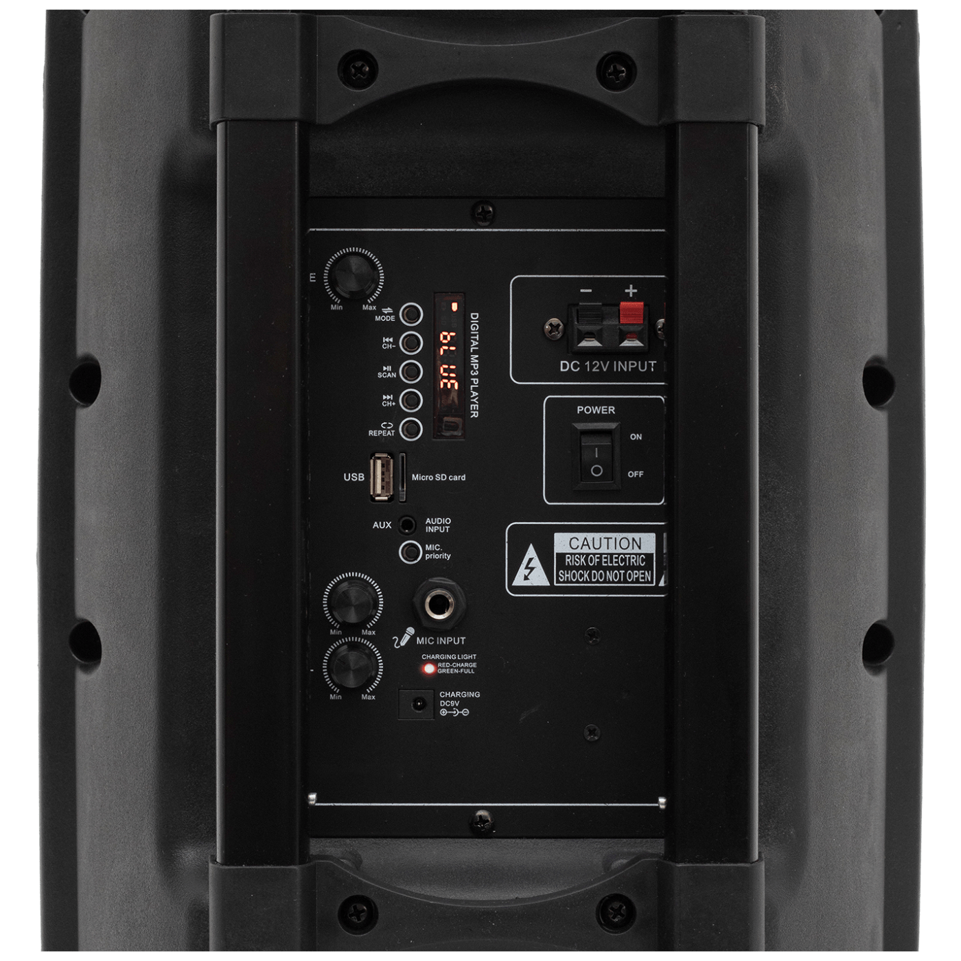 Ulazi USB / microSD, BT, 1 + 1 MIC, AUX, Ø 6.3 mm, Ø 3.5 mm jack, ugrađena baterija Li-ion 7.4 V / 1800 mAh sa funkcijom brzog punjenja, očekivano vrijeme punjenja / rada: ~ 3,5 h / ~ 8 h, automatsko punjenje sa LED indikatorom, dizajniran za rad na baterije nezavisno od el.mreže, 2-smjerni bas refleks, 250 mm subwoofer, 80 W, impedansa 4 Ohm, frekvencija 50 - 20.000 Hz, može se postaviti na postolje Ø 35mm (opcija HT 900), robustan dizajn, ručka za nošenje na izvlačenje i kotačići za kretanje