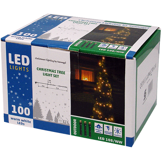 Dekorativna LED rasvjeta, za vanjsku i unutarnju upotrebu, 100 LED dioda, kabel dužine 7 met, boja svjetlosti topla bijela, 8 programa rada, napajanje 230 V / 24 V adapter, IP44