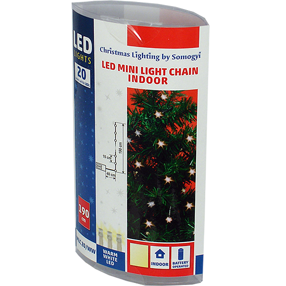 Dekorativna LED rasvjeta, za unutarnju upotrebu, 20 LED dioda, prozirni kabel dužine 1,9met, ON / OFF prekidač, boja svjetlosti topla bijela, napajanje 2 x 1,5V AA baterije