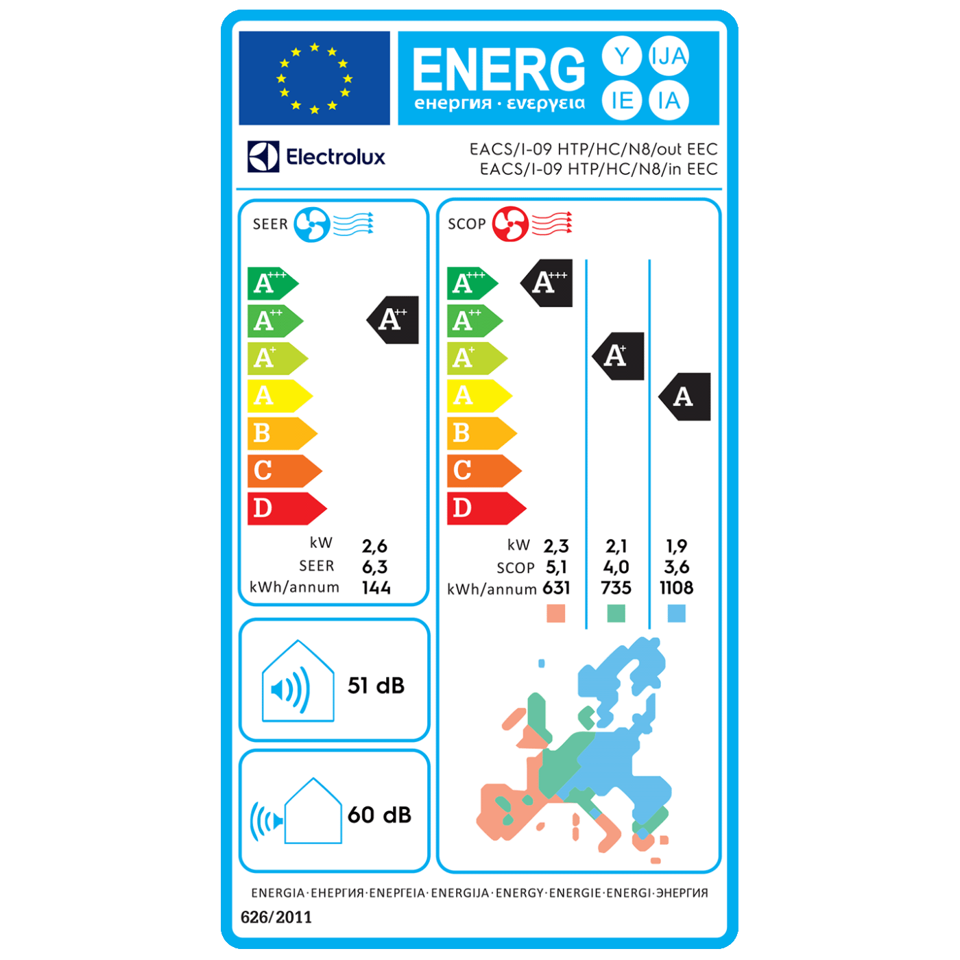 Nazivni učinak grijanja 2.63 kW, nazivni učinak hlađenja 2.6 kW