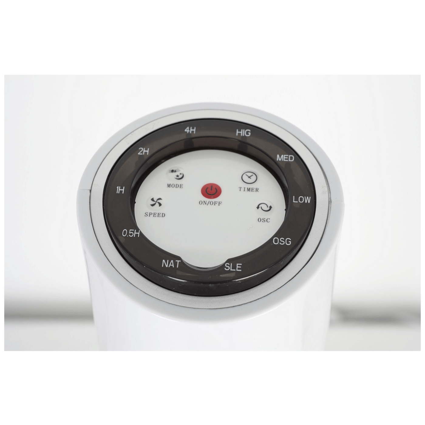 Ventilator stupni, rotacioni, efektivan u hlađenju, jednostavan za postavljanje. Zahvaljujući konstrukciji koja štedi prostor, maloj masi, integriranoj ručki, ventilator se može vrlo brzo premjestiti te je znaći prostorno veoma upotrebljiv. Praktična funkcija timera omogućuje vremenski upravljivu uporabu koja štedi Vaš novac. Uređaj ima tri brzine, oscilirajući je. Kod osciliranja ventilator se neprestano kreće lijevo / desno do 80°. Ove funkcije mogu se podesiti preko daljinskog upravljača ili na samom uređaju.