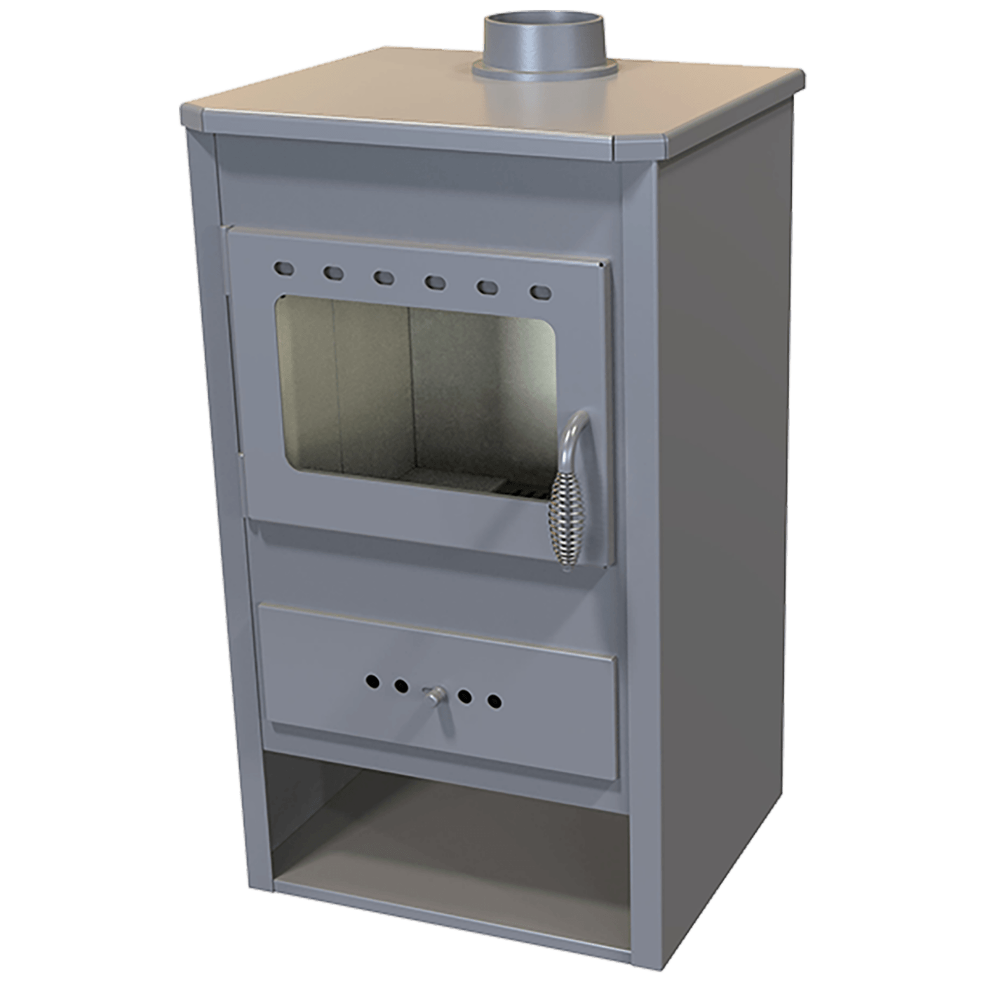 Peć na čvrsto gorivo, 6.5 kW, priključa na dimnjak odozgo, odvod dimnih plinova Ø 120, dimenzije 820 x 450 x 400 mm, dimenzije ložišta 300 x 380 x 320 mm, vrste goriva drvo, ugalj, briket