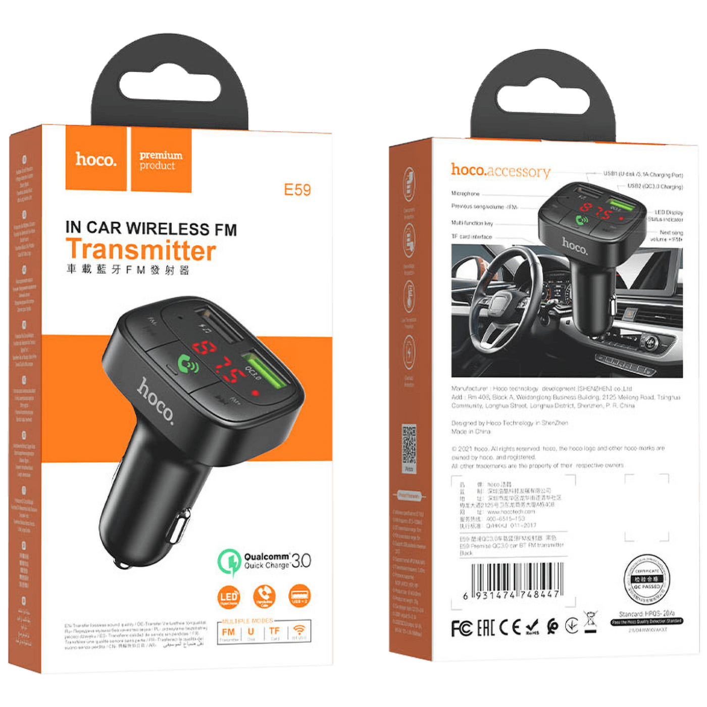 hoco. FM modulator, Bluetooth, 12/24V, 2 x USB, microSD, PD 18W - E59 Promise