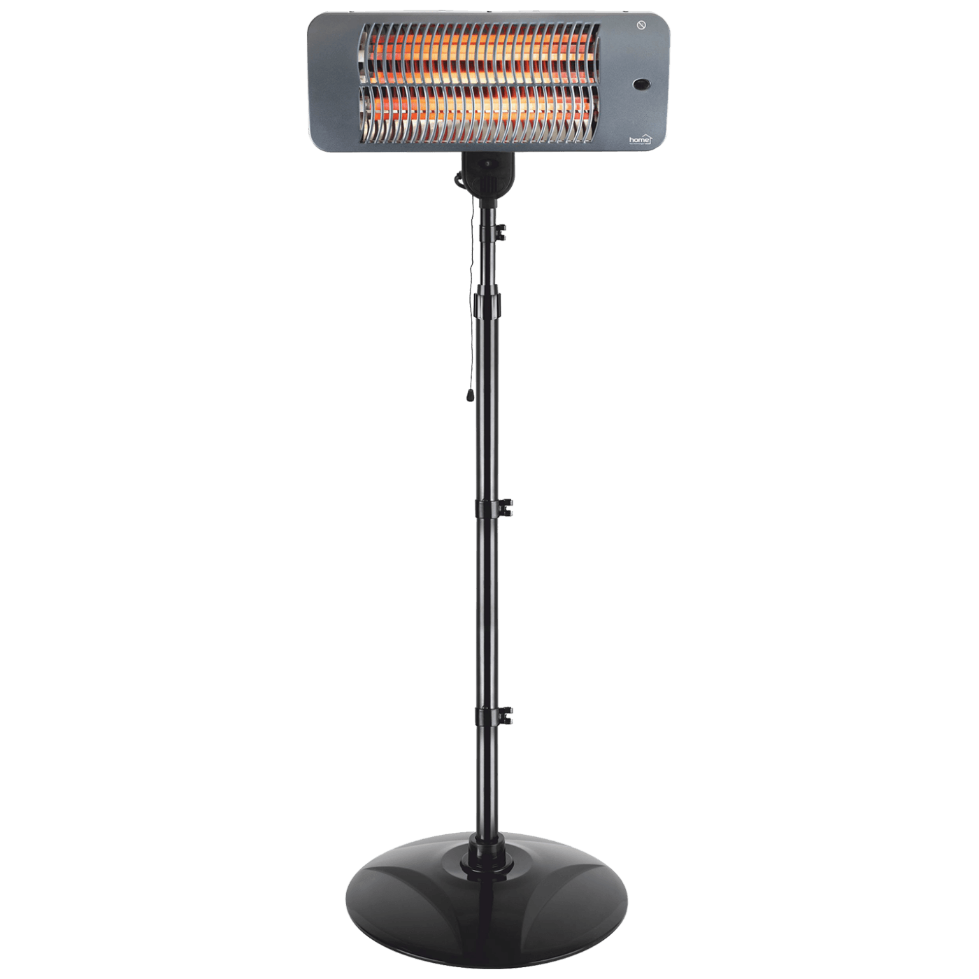 Halogena grijalica, 3 nivoa snage 650 W / 1300 W / 2000 W, potezni prekidač, IPX4 zaštita od prskanja vodom, automatsko isključivanje u slućaju prevrtanja, napajanje 230 V ~ / 50 Hz, dimenzije 500 x 2020 mm.