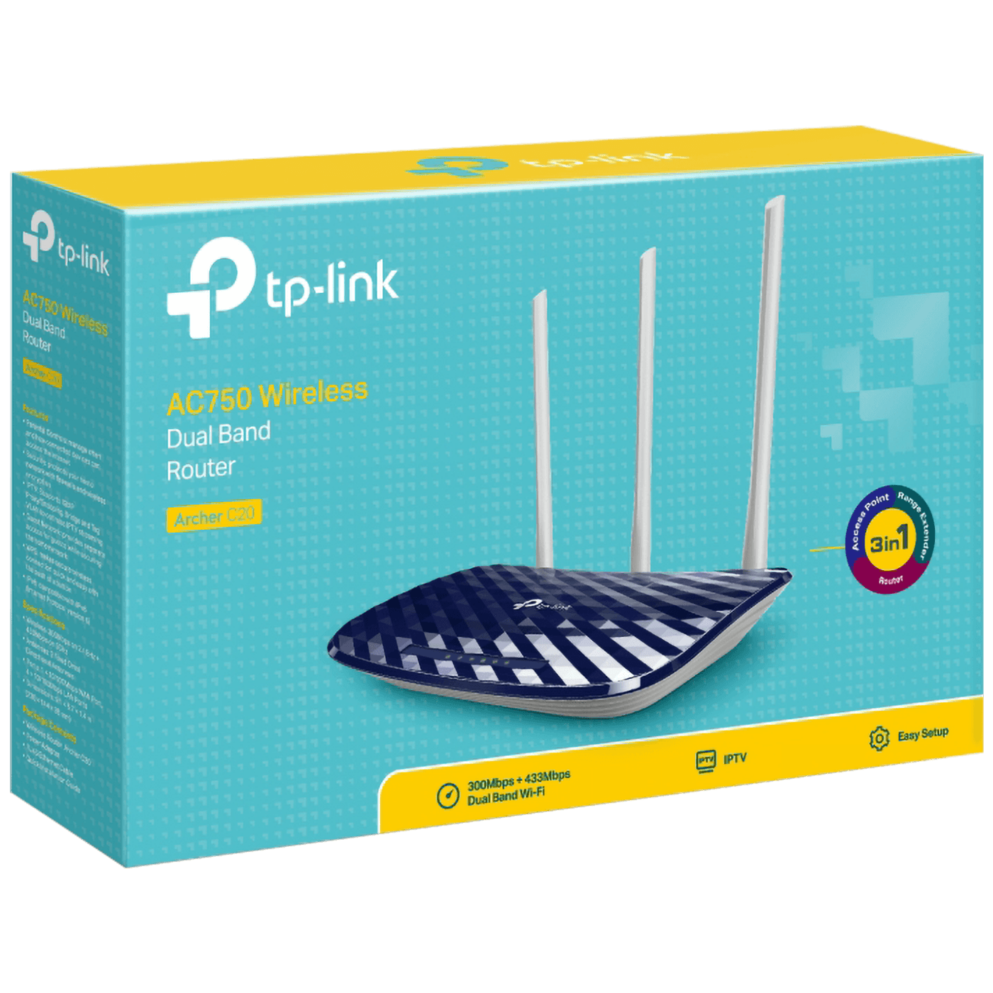 TP-LINK Wireless Router, AC750, Dual Band, up to 733Mbbps - Archer C20