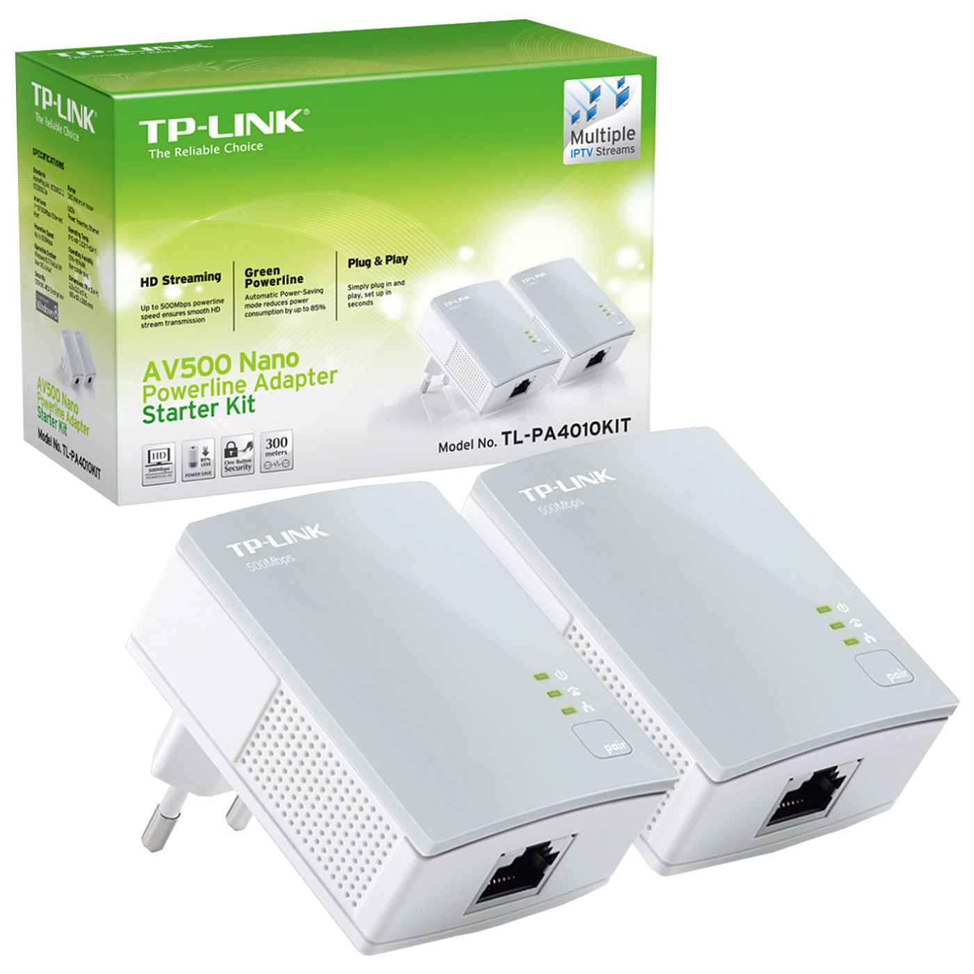 Mreža putem strujnog kabela, PA4010 KIT (PLC), domet do 300 metara, brzina 600Mbps, 100~240 VAC, 50/60Hz, 2 adaptera u pakiranju ( 2 ethernet kabela za povezivanje), brza i jednostavna instalacija, bez gubitka priključnog napojnog mjesta