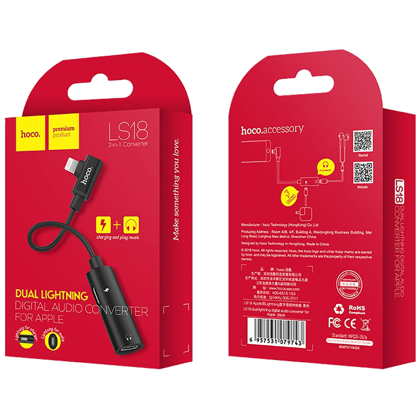 hoco. Adapter za slušalice 2in1, iPhone,Lightning na 2 x Lightning - LS18 Lightning to Lightning