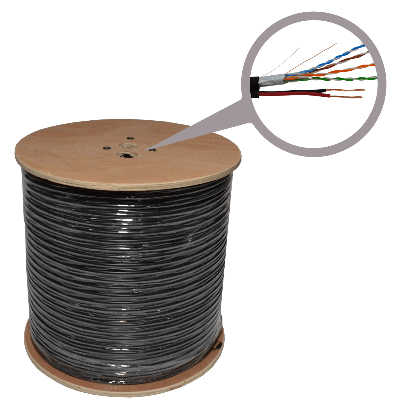 CAT5e UTP mrežni kabel + napajanje 2 x 0,75, CCA (Copper Clad Aluminum - Bakrom obložen Aluminij), vanjski oplet PVC, pakiranje 305 metara, crna boja,