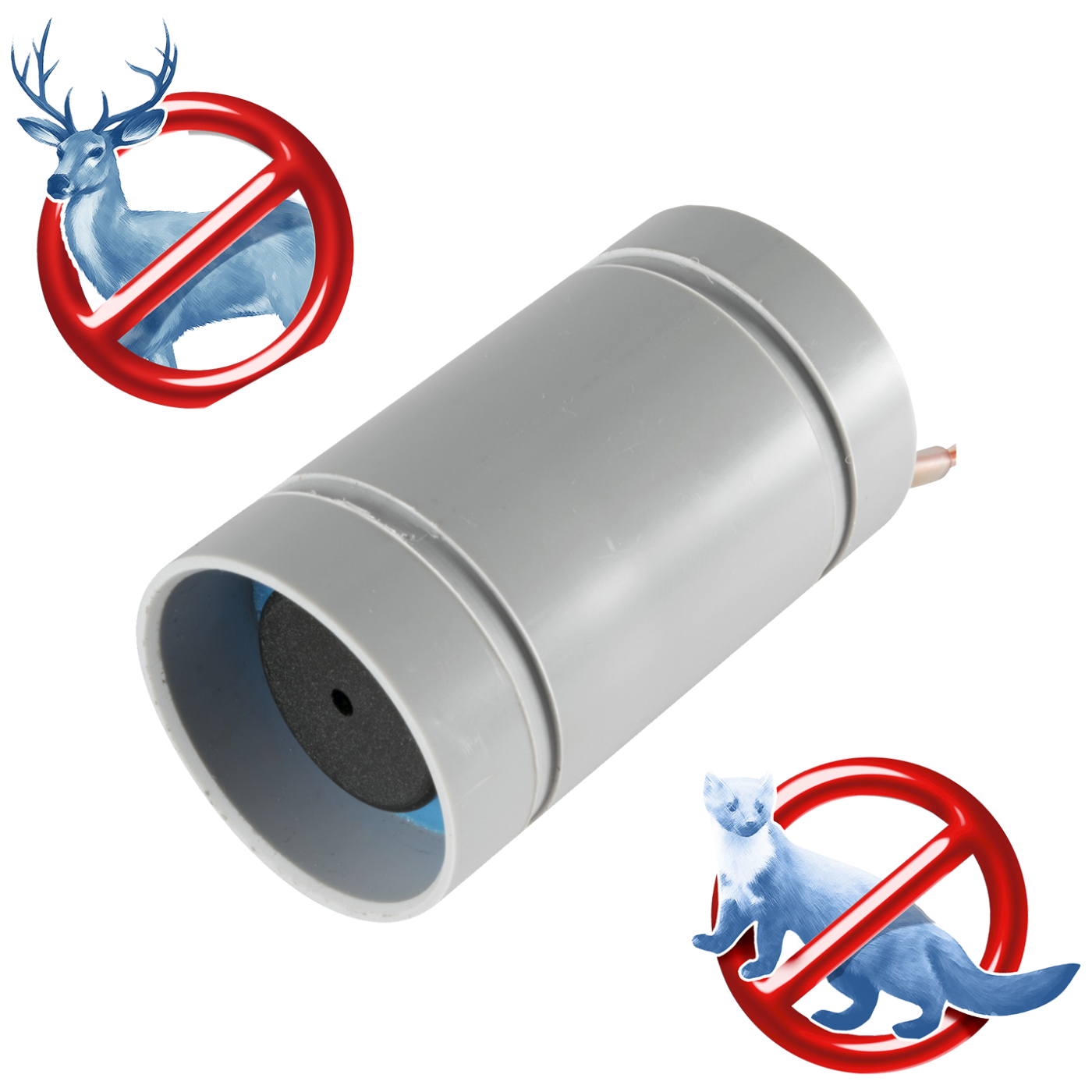 Rastjerivač divljaći i glodara VR 01, emitira signal svakih 3 do 6 sekundi , 70dB za manje štetočine ( štakori dr glodari) i 110dB na udaljenosti od 1 metar za veću divljač ( jeleni, lasica itd... ), frekvencija 5 kHz- 15kHz / 0.03 KHz, dimenzije Ø38 x 64 mm, napajanje 12V, kabel sa stopicama dužine 2.5 metara za spajanje na bateriju 12V. Mogućnost ugradnje u vozilo