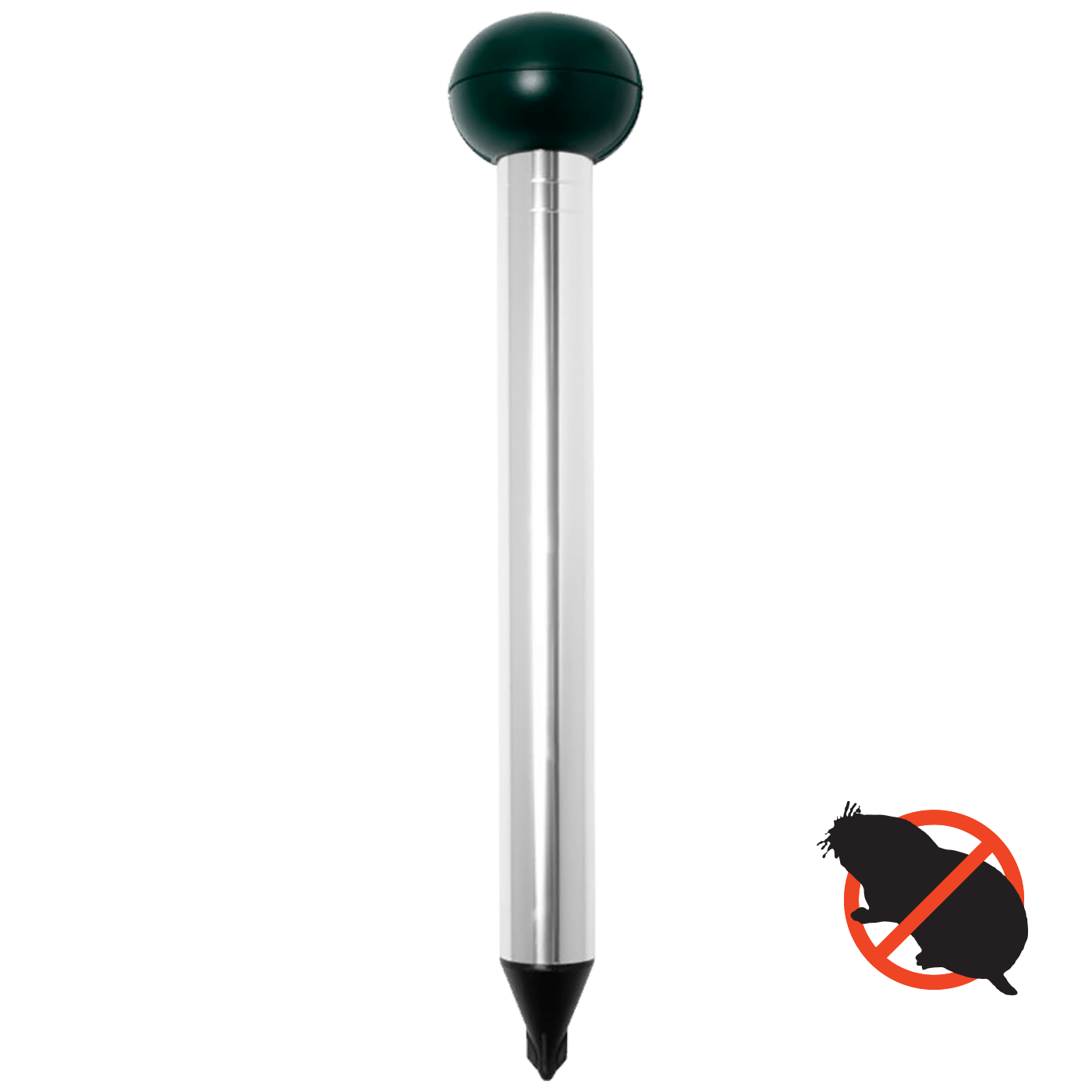 Bez posebne instalacije, kružnim zvučnim valovima rastjeruje krtice, zvučni valovi nisu štetni po zdravlje ljudi i ostalih životinja, ovisno od konfiguracije terena uređaj je efikasan do 1250 m² ovisno o vrsti tla, visina 38 cm, napajanje 4 x1.5 V D baterije ( nisu uključene u pakiranje )