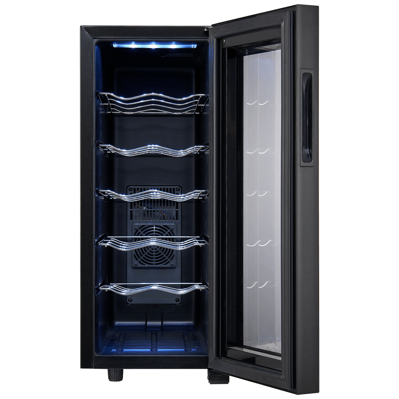 Rashladna vino vitrina, zapremina 33 lit., kapacitet 12 boca, niska potrošnja energije, tihi ( Kompresor ), elegantna upravljačka ploča s kontrolama na dodir, podešavanje temperature, pozadinsko unutarnje osvjetljenje, napajanje 220-240V - 50/60Hz / 50W