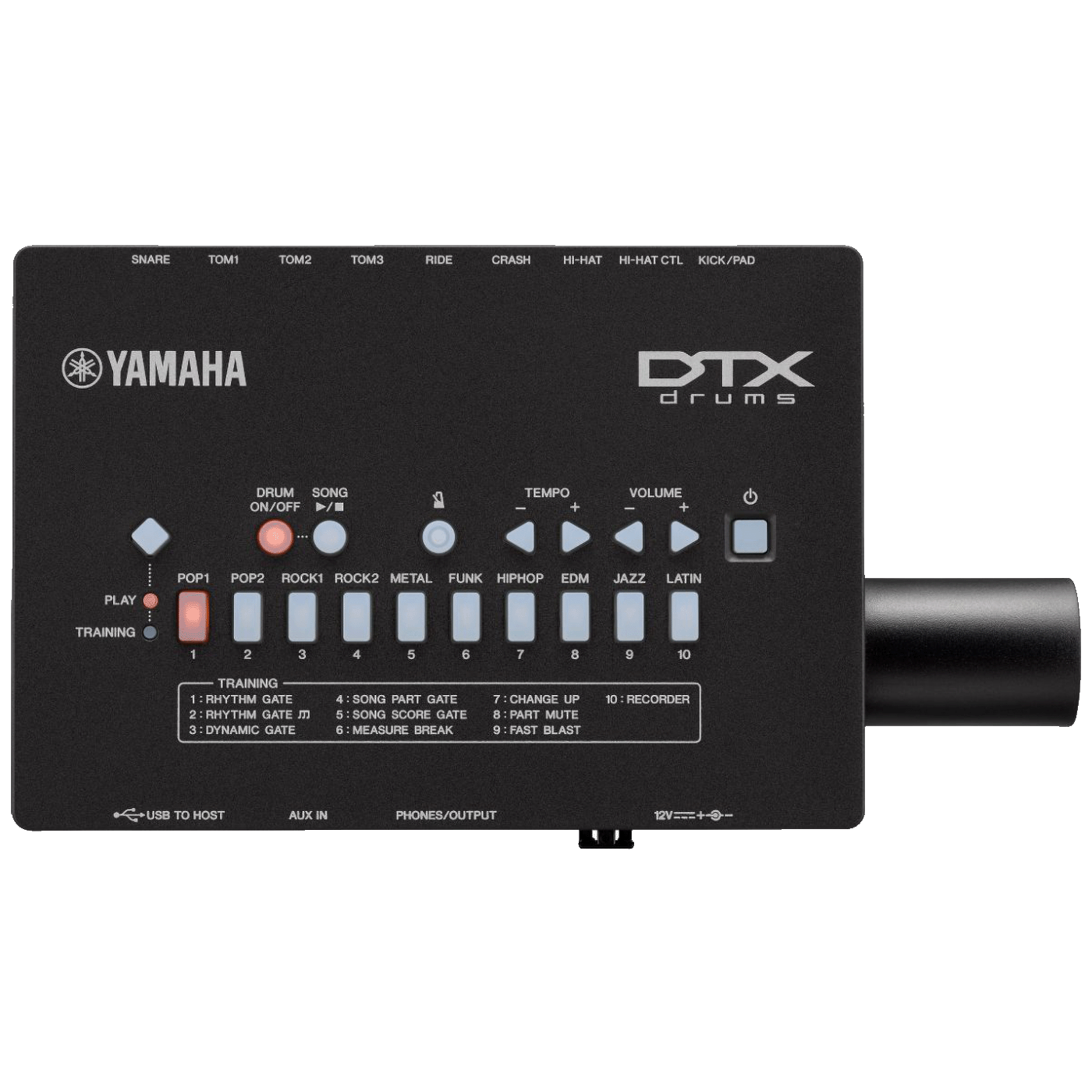 DTX dolazi s 10 ugrađenih funkcija vježbanja koje su moguće samo s elektroničkim bubnjem. To uključuje funkciju Pad Gate, prikladnu čak i za početnike, koja vas postupno uvježbava tijekom vremena, funkciju Rhythm Gate, koja potiče precizan osjećaj za ritam – temeljnu za bubnjanje, i funkciju Fast Blast, koja mjeri brzinu vaših udaraca . Postoji i funkcija bodovanja tako da možete objektivno procijeniti svoje vještine. Iskoristite ovaj kompletan niz funkcija podrške kako biste poboljšali svoju moć izražavanja kao bubnjar.