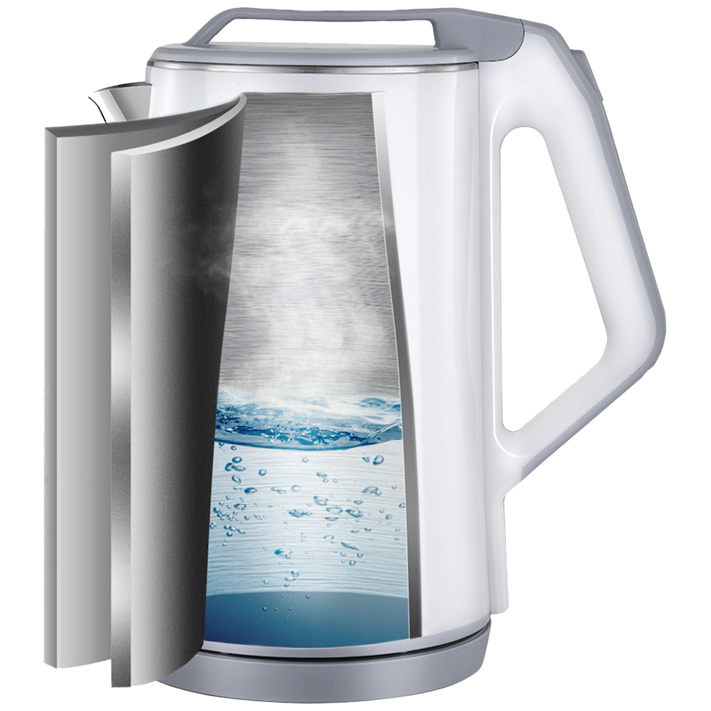 Kuhalo za vodu, zapremina 2.0 lit., snaga 1500 W, skriveni grijač, rotacija 360°, kućište s dvostrukim zidom, poklopac sa sigurnosnim zaključavanjem, automatski / ručni prekidač za uključivanje / isključivanje, svjetlosni indikator, prozor za praćenje razine vode, zaštita od rada bez vode