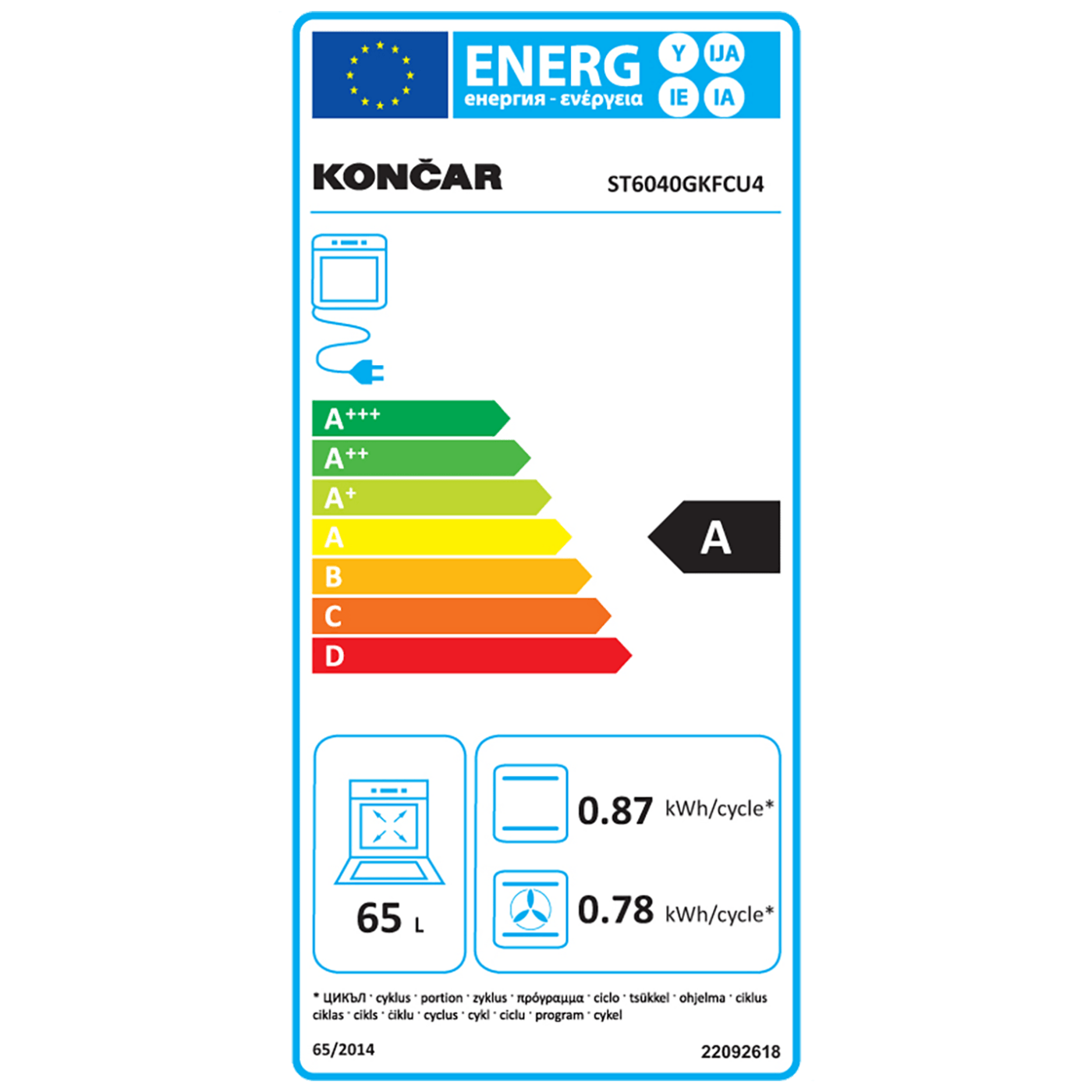 Končar Štednjak 4 staklokeramičke ringle, pećnica 65l, A - ST6040GKFCU4