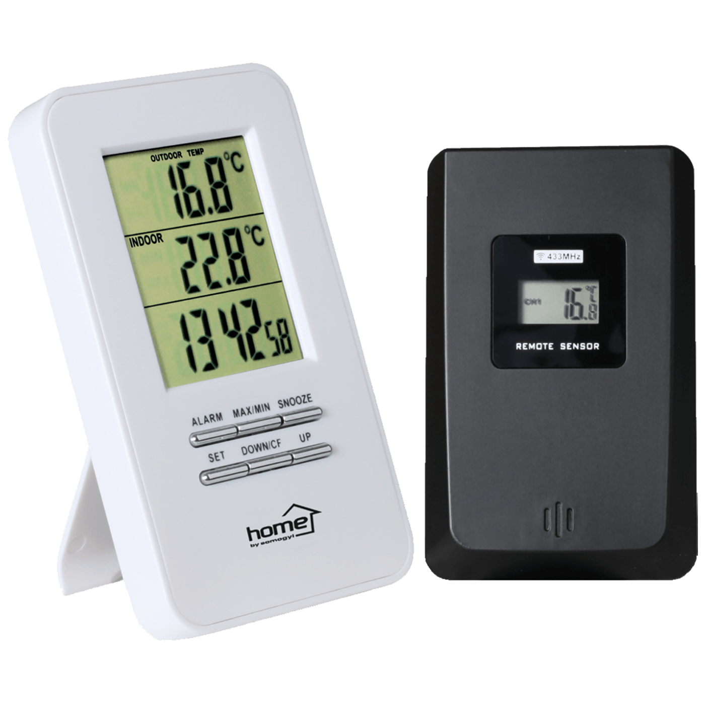 Vremenska stanica za mjerenje vanjske (-20 – + 60 °C), unutarnje (-9 - + 50°C), domet do 60 met., radna frekvencija 433,92 MHz, zaslon 41 x 53 mm, prikaz 12/24 sata, prikaz min. i max. vrijednosti, alarm, samostojeca ili mogućnost montaže na zid. Napajanje: unutarnja jedinica 2 x 1,5V AAA baterije ( nisu uključene u pakiranje ), vanjska jedinica 2 x 1,5V AAA baterije ( nisu uključene u pakiranje ), dimenzije: unutarnja jedinica 75 x 125 x 20 mm, vanjska jedinica 60 x 95 x 25 mm,