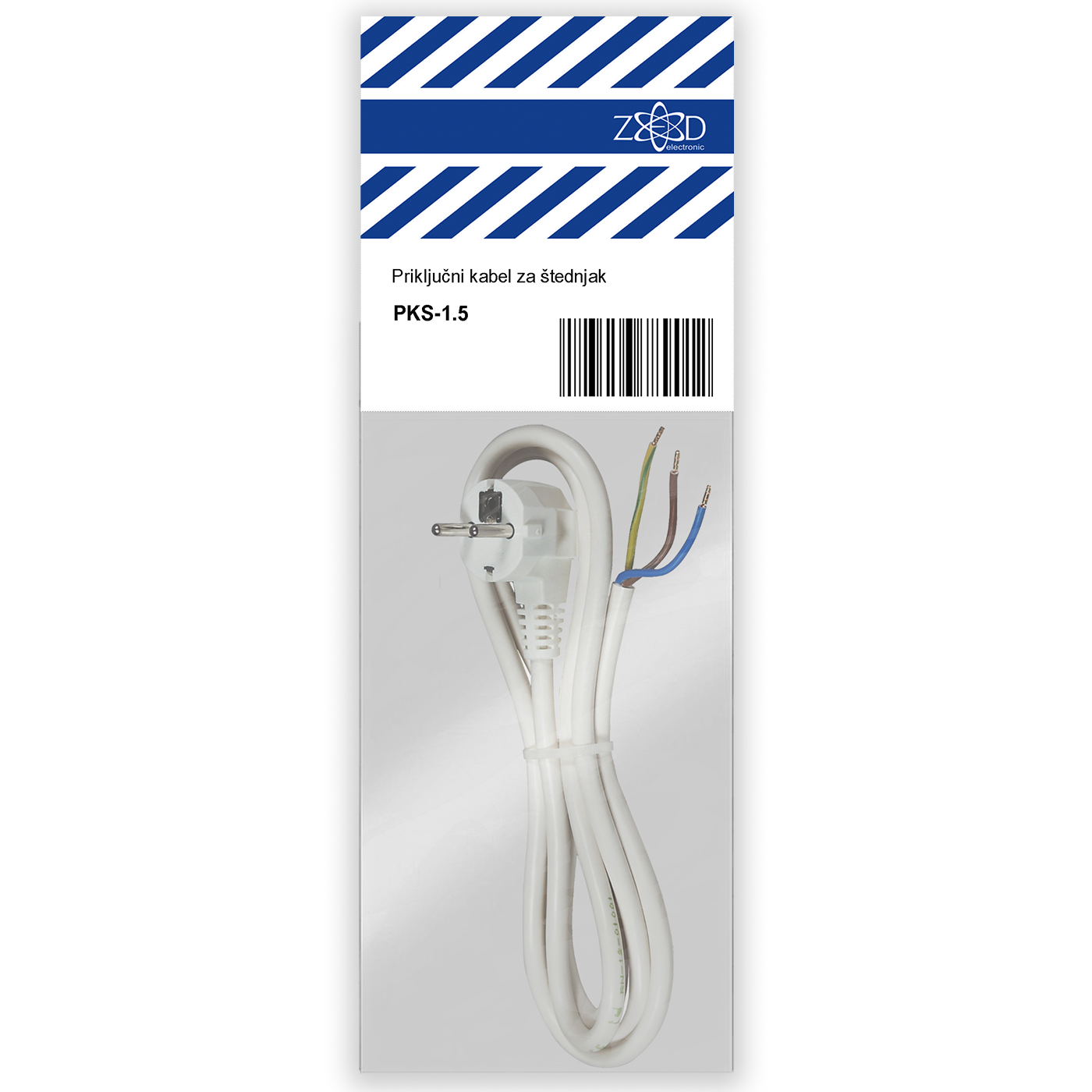 Priključni kabel za štednjak, 1,5 metar, 3X2,5 H05VV-F, 300/500V, bijela boja, blister pakiranje sa EAN kodom.