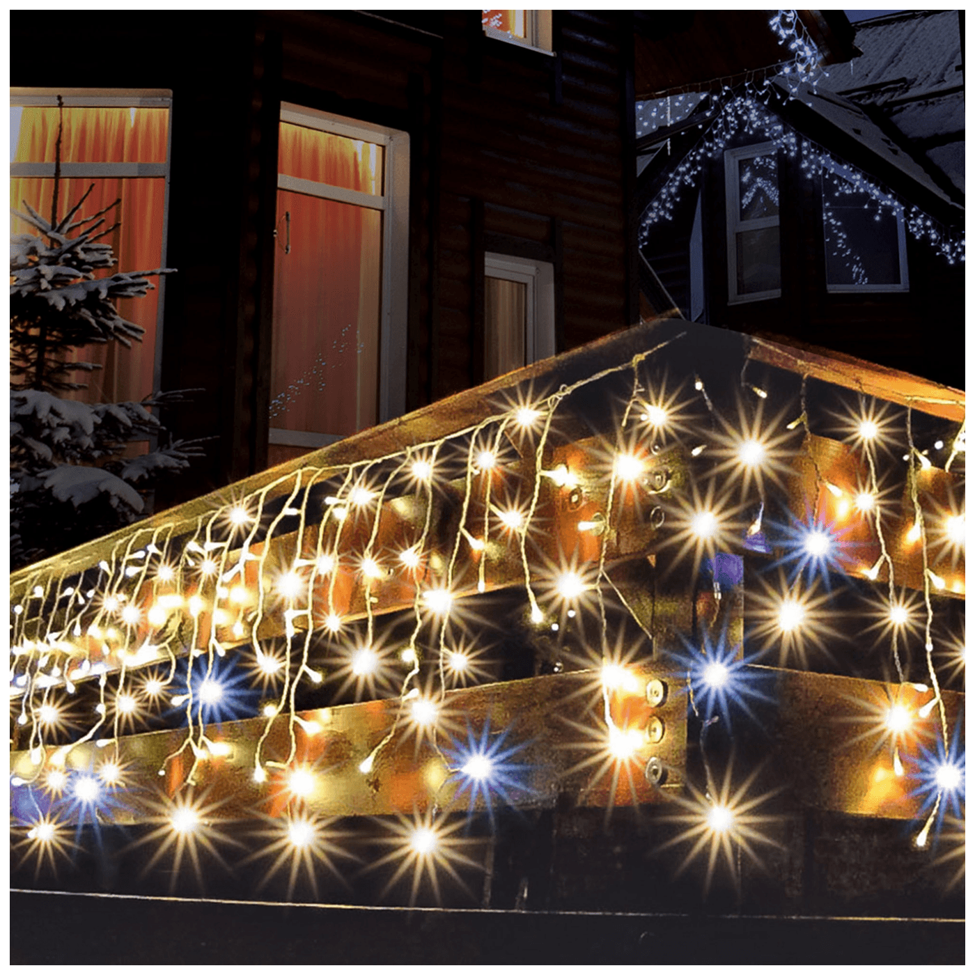 Dekorativna LED rasvjeta, za vanjsku i unutarnju upotrebu, 300 LED dioda, bijeli kabel dužine 5 met, boja svjetlosti toplo bijela, hladna bijela LED bljeska u svakom drugoj vijencu, napajanje 230 V