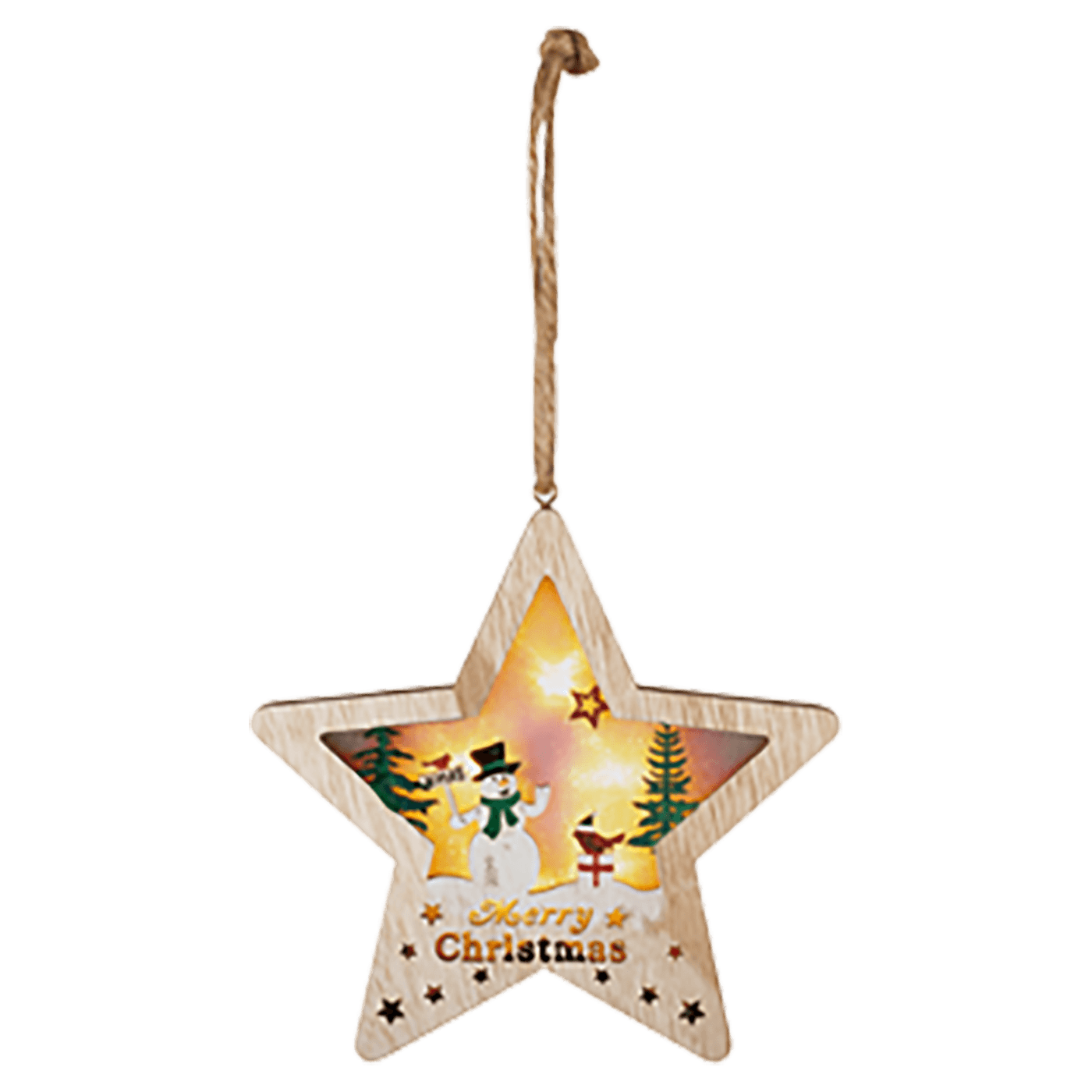 Dekorativna rasvjeta, 6 kom. toplo bijelih LED, drveni ukras za vrata i prozor, zvijezda i snjegović, timer, kontinuirana svjetlost, 6 H ON / 18 OFF, napajanje 2 x 1.5V AAA baterije ( nisu uključene u pakiranje ), dimenzije 18 x 17 x 2.8 cm