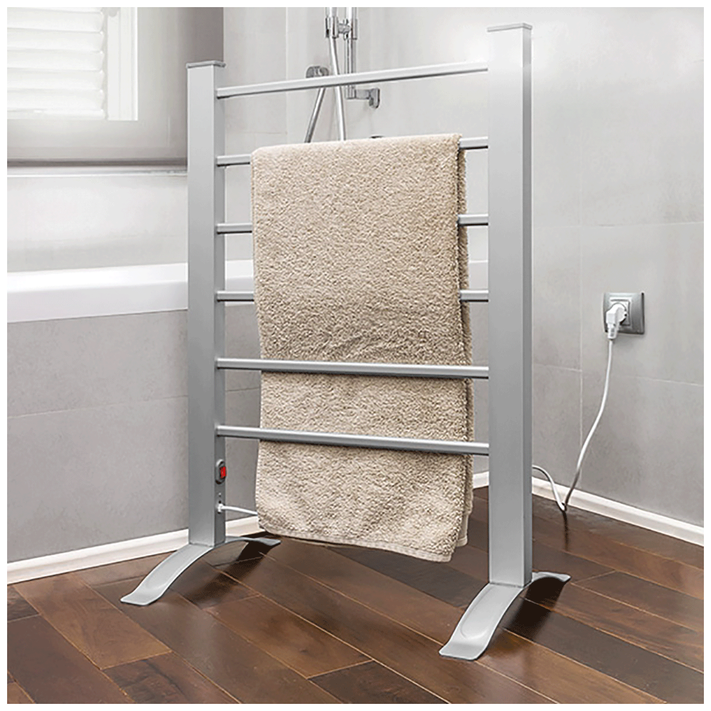 Snaga grijača 100W, 6 šipki, samostojeći ili montaža na zid, jednostavan i praktičan za korištenje, zaštita od pregrijavanja, IPX1 standard ( zaštita od kapanja vode vertikalno ), dužina napojnog kabela 1.5 met.