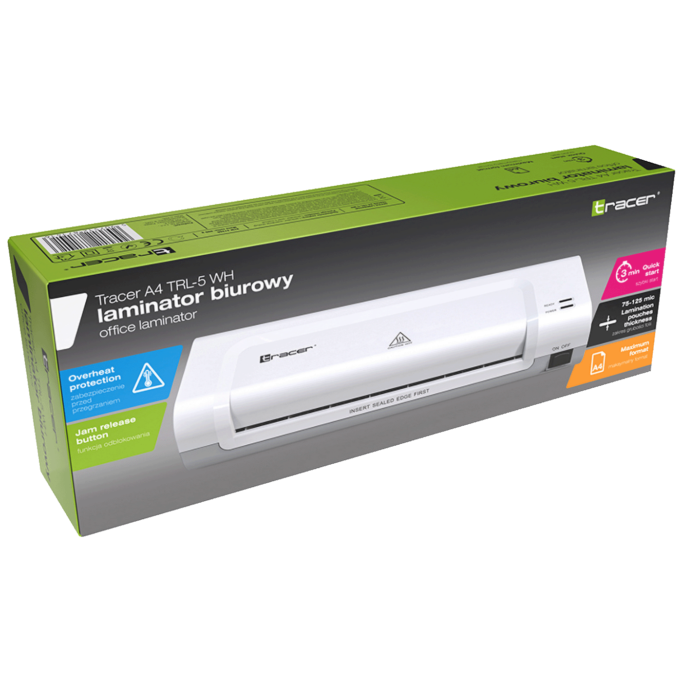 TRACER A4 TRL-5 WH laminator je visokokvalitetni uređaj za vruće laminiranje za kućnu i uredsku upotrebu. Lako će zaštititi važne dokumente ili letke od uništenja.