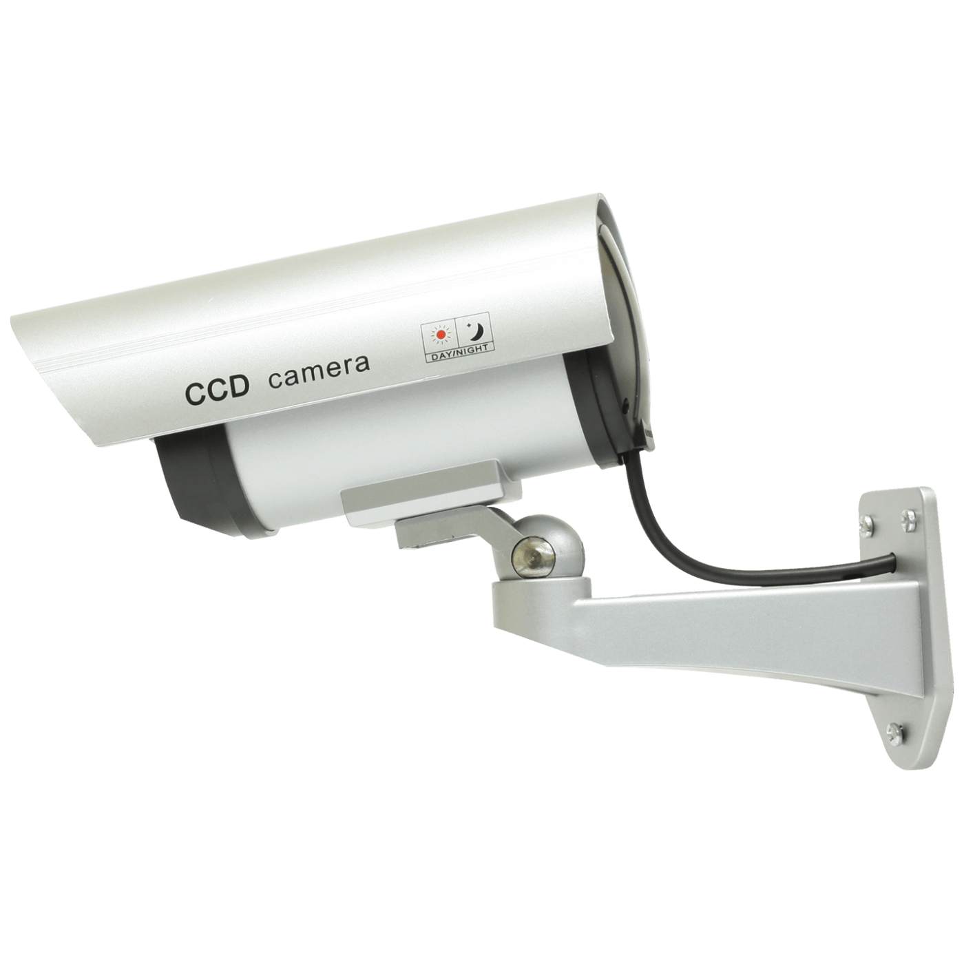 Lažna kamera, idealna za neželjene posjetitelje, prikladna za unutarnju i vanjsku uporabu, LED dioda koja neprestano treperi, podesiv nagib, materijal izrade plastika, napajanje 2 x 1.5 V AA baterije ( nisu uključenje u pakiranje ) dimenzije 230 x 170 x 85 mm