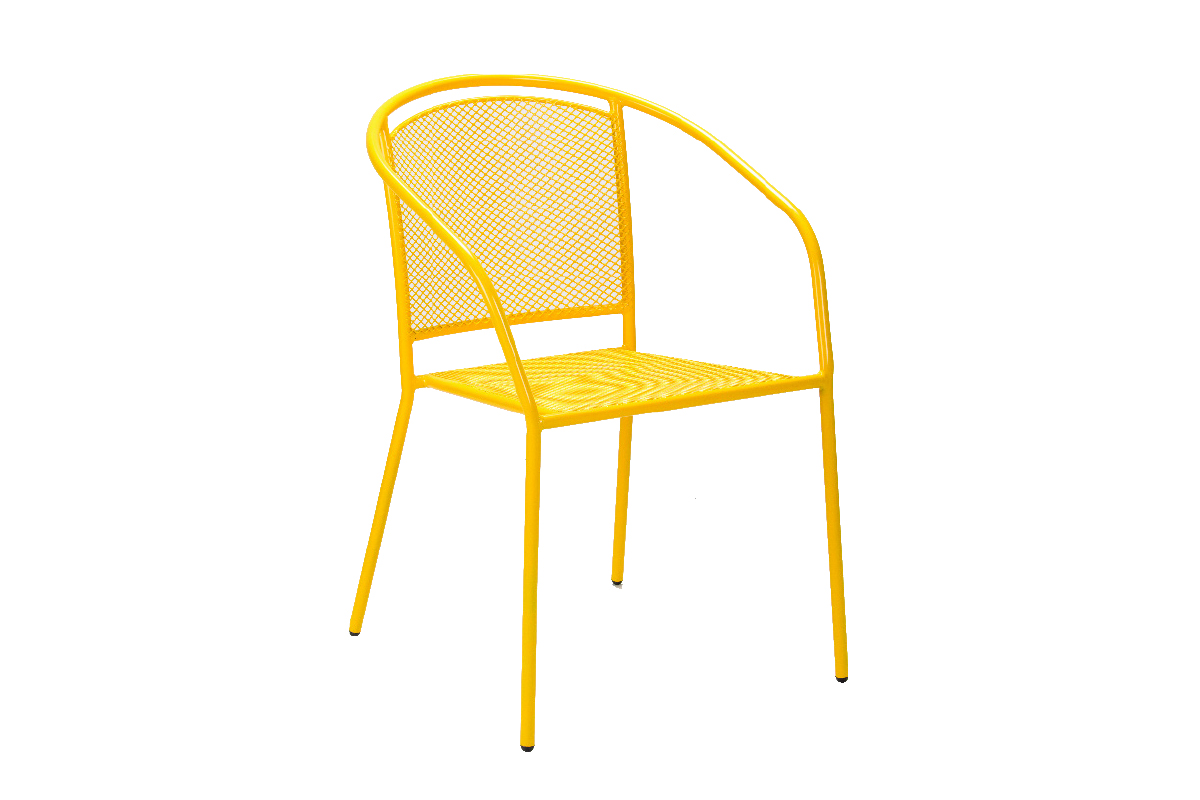 - Metalna stolica sa čeličnom mrežicom i naslonom za ruke