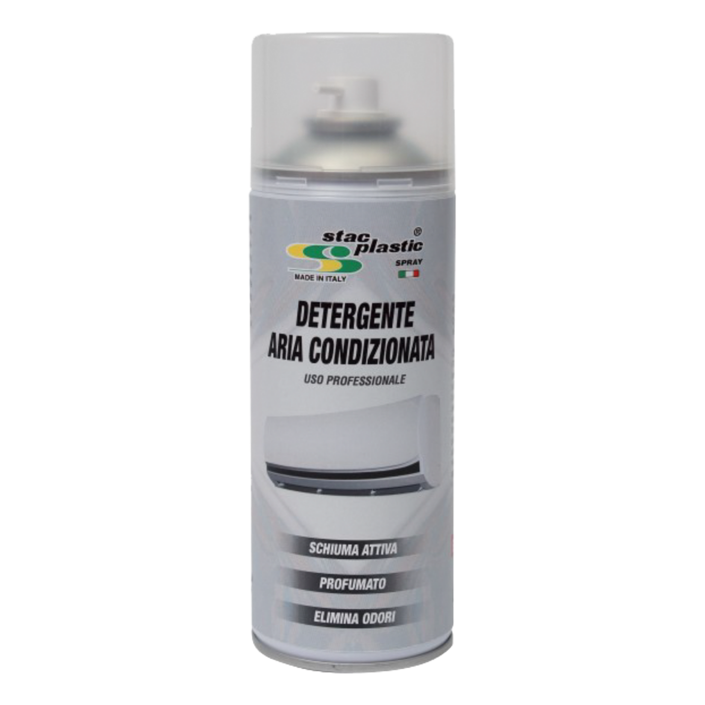 Sprej za čišćenje klima uređaja deterdžent je sa posebnim kemijskim sastavom koji je u mogućnosti ukloniti naslage prljavštine, olakšavajući protok svježeg zraka. Uklanja neugodne mirise, bakterije i plijesan. Smjesa na bazi vode s ne-ionskim aktivnim tvarima , alkalnim solima koja svojom posebnom formulacijom napada samo molekule prljavštine. Smanjuje rizik od alergija, infekcija. Sadrži potisni plin propan - butan, aerosol, aktivnu pjenu. Na YouTube linku je prikazan način čišćenja klime...