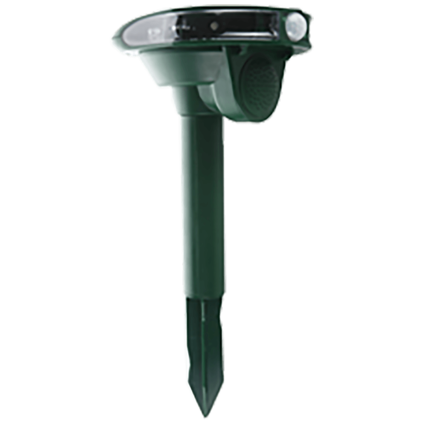 Bez posebne instalacije, rastjeruje životinje kombiniranim svjetlosnim i zvučnim signalima, PIR senzor pokreta, kut detekcije 120°, ugrađena solarna ćelija i punjač baterija, Ni-MH baterija 4 x 1.2 V 300 mAh, dimenzije 13 x 16 x 35 cm