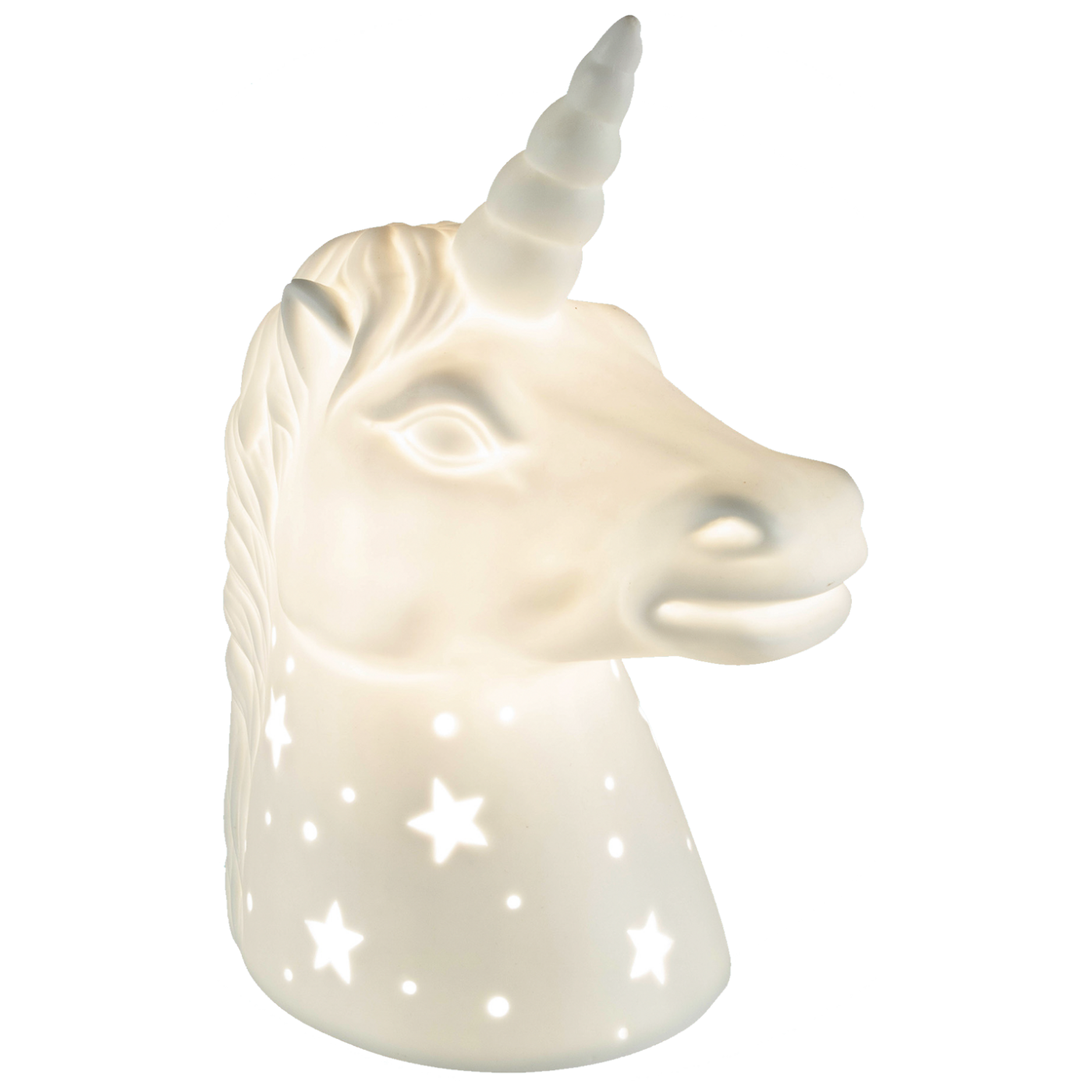 Dekorativna LED rasvjeta, jednorog, materijal izrade porculan, izvor svjetlosti žarulja E14, max 25W ( žarulja nije uključena u pakiranje ), napajanje 230V / 50Hz, dužina napojnog kabela 165 cm, dimenzije 110 x 260 x 170 mm