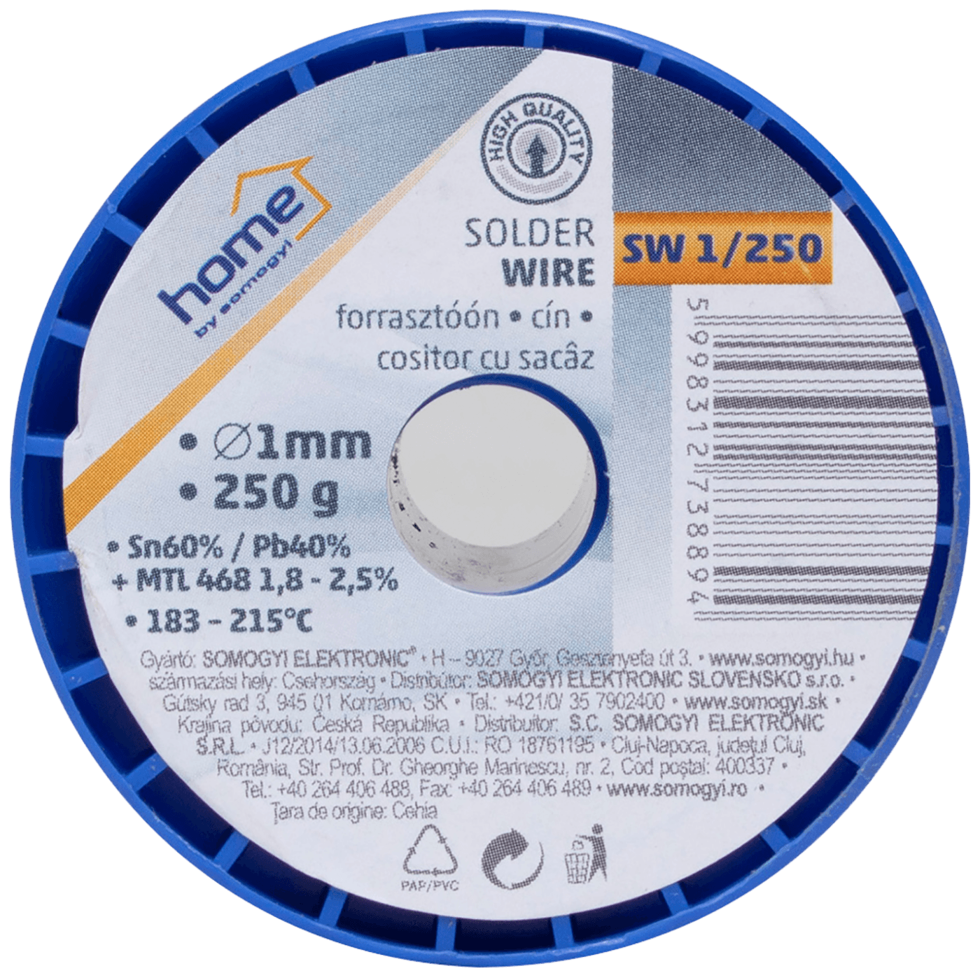 Tinol za lemljenje sa kalofonijumom , Ø 1.0 mm, sastav Sn - 60%, Pb - 40%, koriti se pri mekom lemljnju, pakiranje 250 g