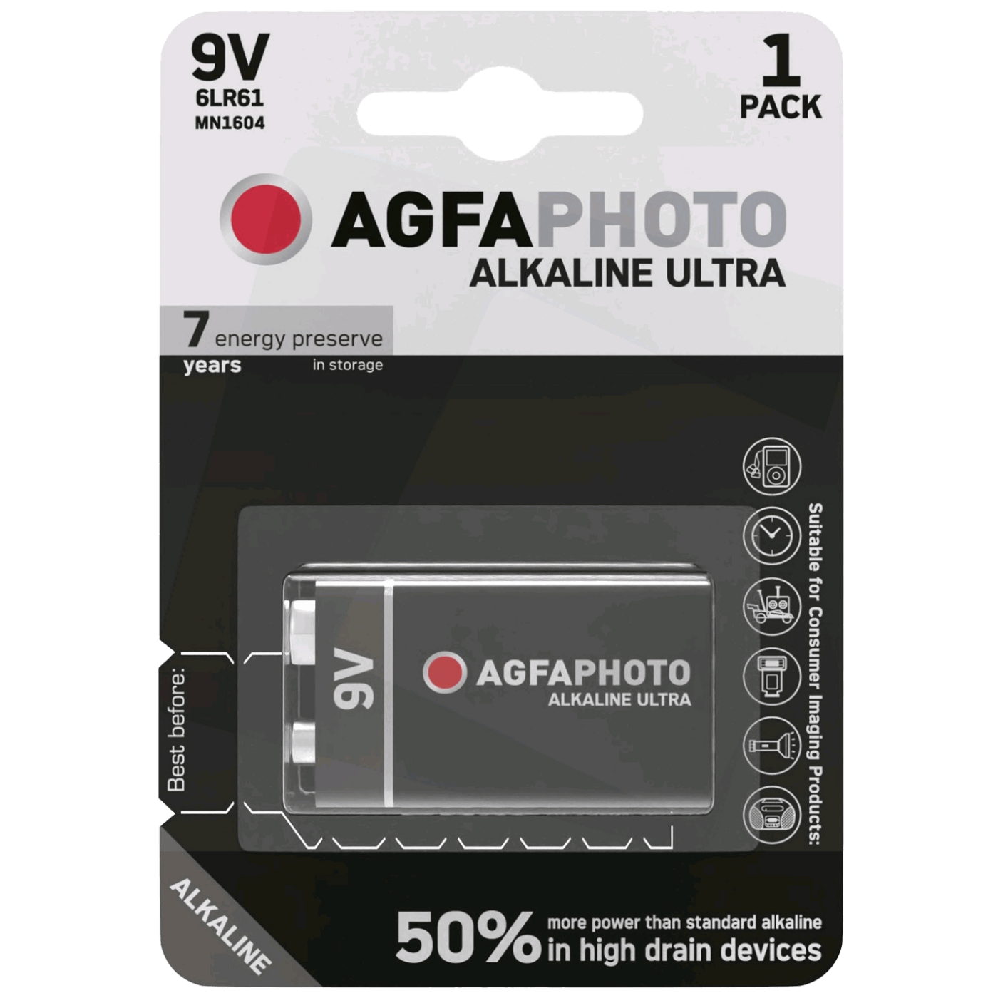 Agfa Baterija alkalna, 6LR6, 9V, blister 1 kom. - 9V B1