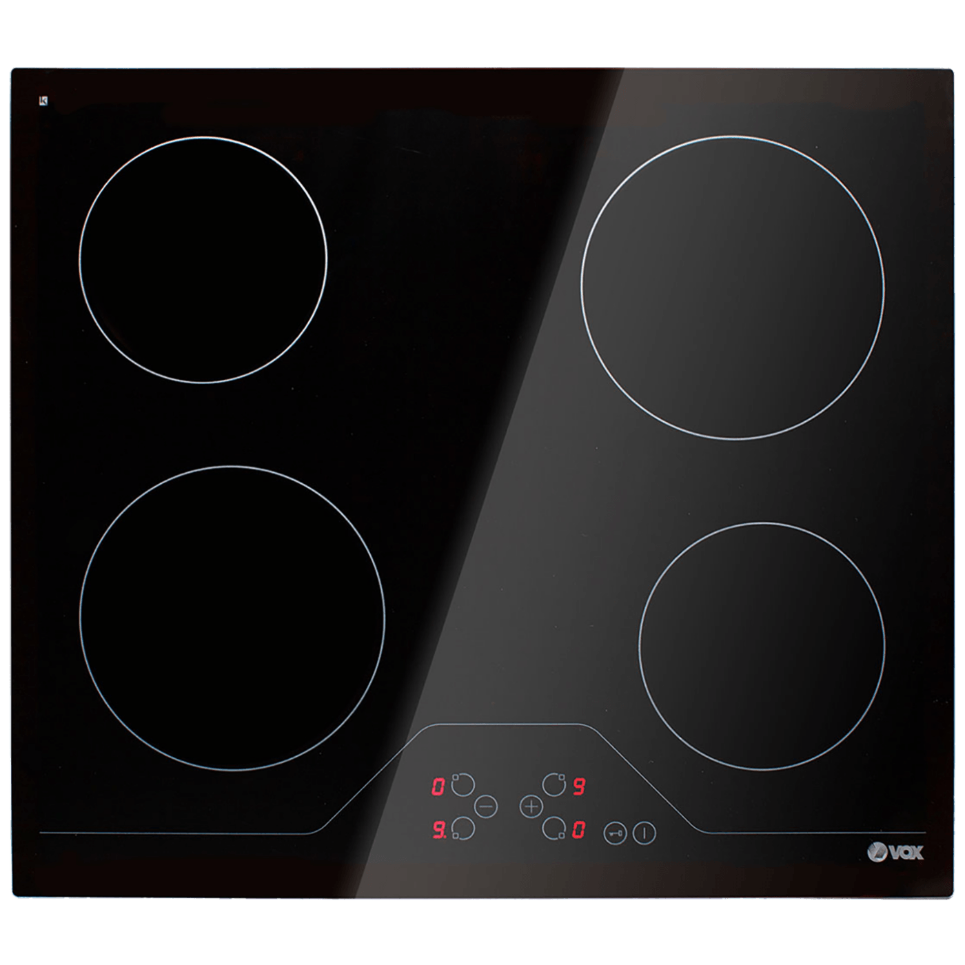 Ugradbena staklokeramička ploča EBC400DB, 4 zone za kuhanje, digitalna kontrola, snaga 2.6 kW, zona 1 145 mm / 1200 W, zona 2 145 mm / 1200 W, zona 3 180 mm / 1800 W, zona 4 180 mm / 1800 W, dimenzije: 590 x 41 x 520 mm, boja crna