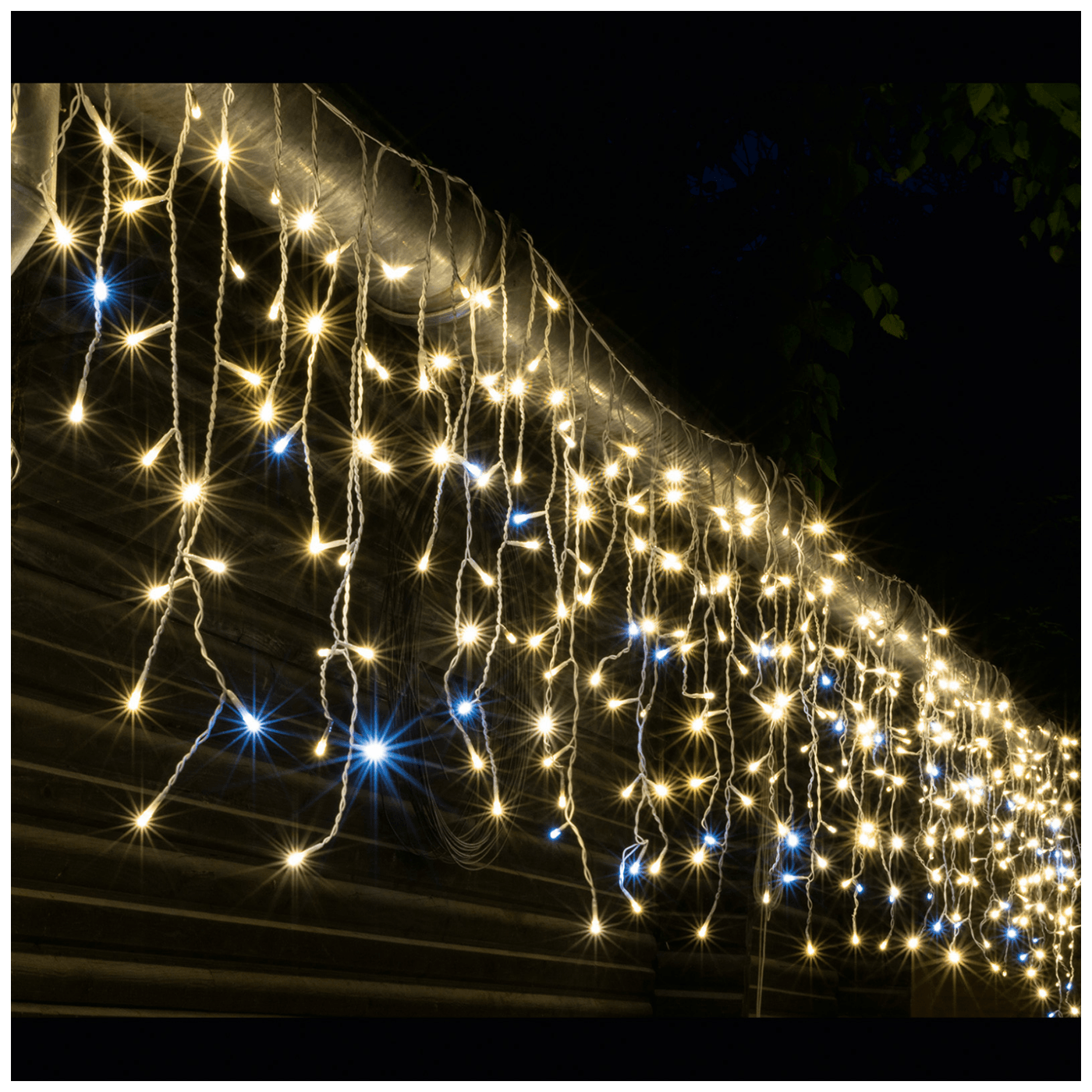 Dekorativna LED rasvjeta, za vanjsku i unutarnju upotrebu, 600 LED dioda, bijeli kabel dužine 10 met, boja svjetlosti toplo bijela, na svakom vijencu po jedna hladno bijela, napajanje 230 V / 24 V adapter