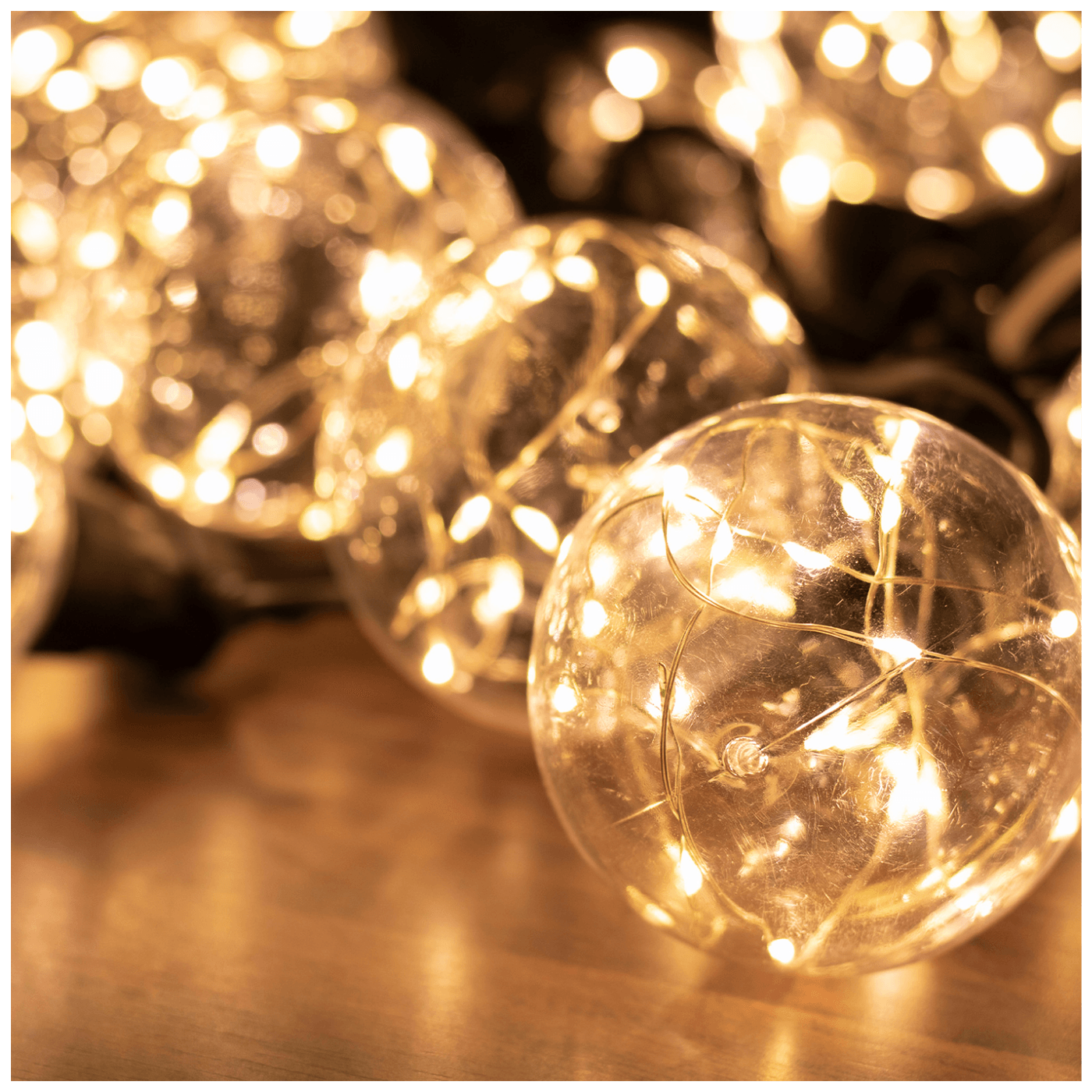 Dekorativna rasvjeta, 200 mikro LED dioda, 10 LED plastičnih, prozirnih kugle Ø 8 cm s toplo bijelim svjetlom