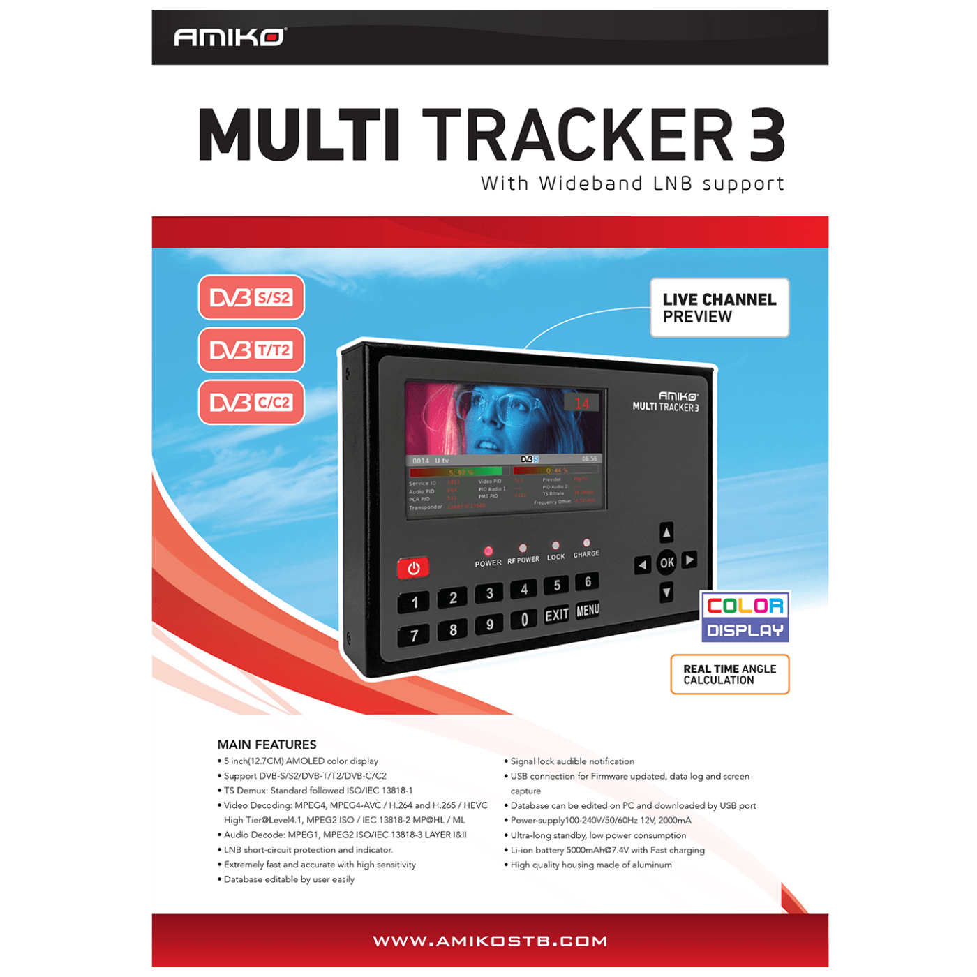 Amiko Mjerni instrument, DVB-S/S2/DVB-T/T2/DVB-C/C2, AMOLED ekran - MULTITRACKER 3