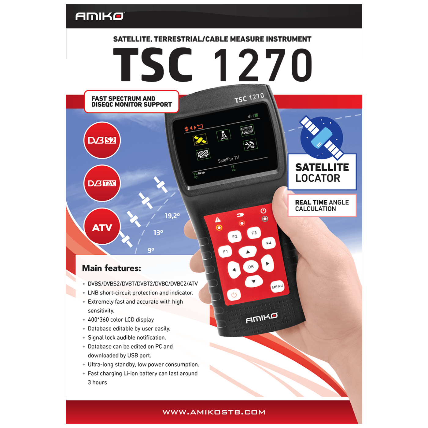 Amiko Instrument mjerni, DVB-S2/T2/C/ATV, Sat Finder - TSC 1270