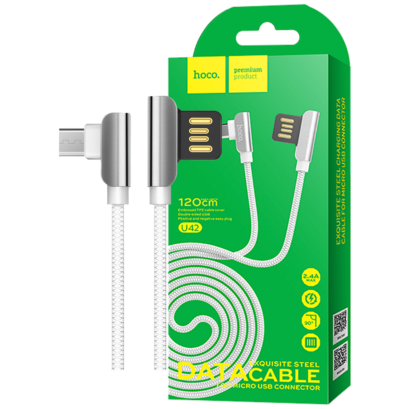 hoco. USB kabl za smartphone, micro USB, 1.2 met., 2.4 A, bijela - U42 Exquisite steel, Micro USB, WH