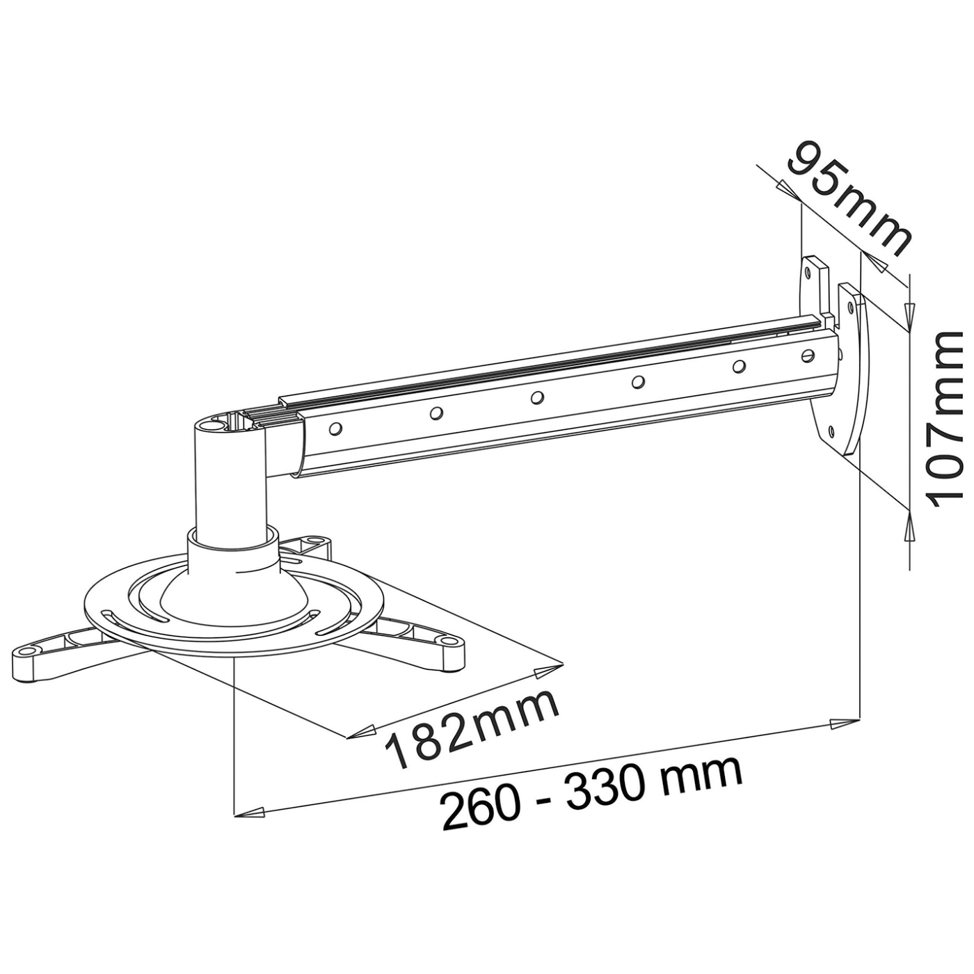 Idealno rješenje za vas ako želite optimalno postaviti projektor! Ovaj zidni nosač omogućava lako prilagođavanje nagiba i udaljenosti od zida, što ga čini savršenim za svaku prostoriju.